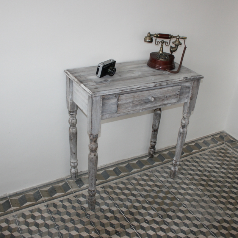 Dřevěný stůl se zásuvkou - soustružené nohy 76x38x81cm