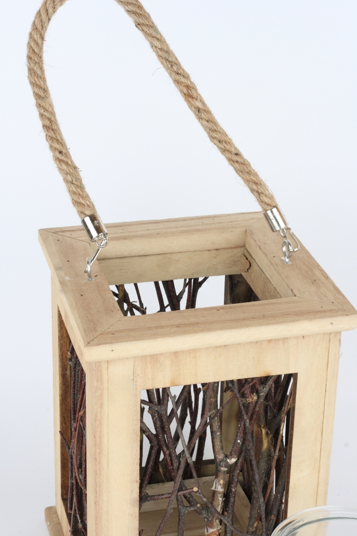 Dřevěný svícen / lucerna z větviček tmavý 23x17cm