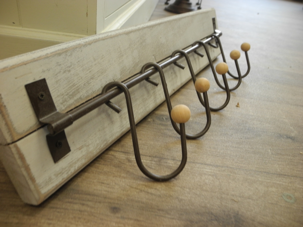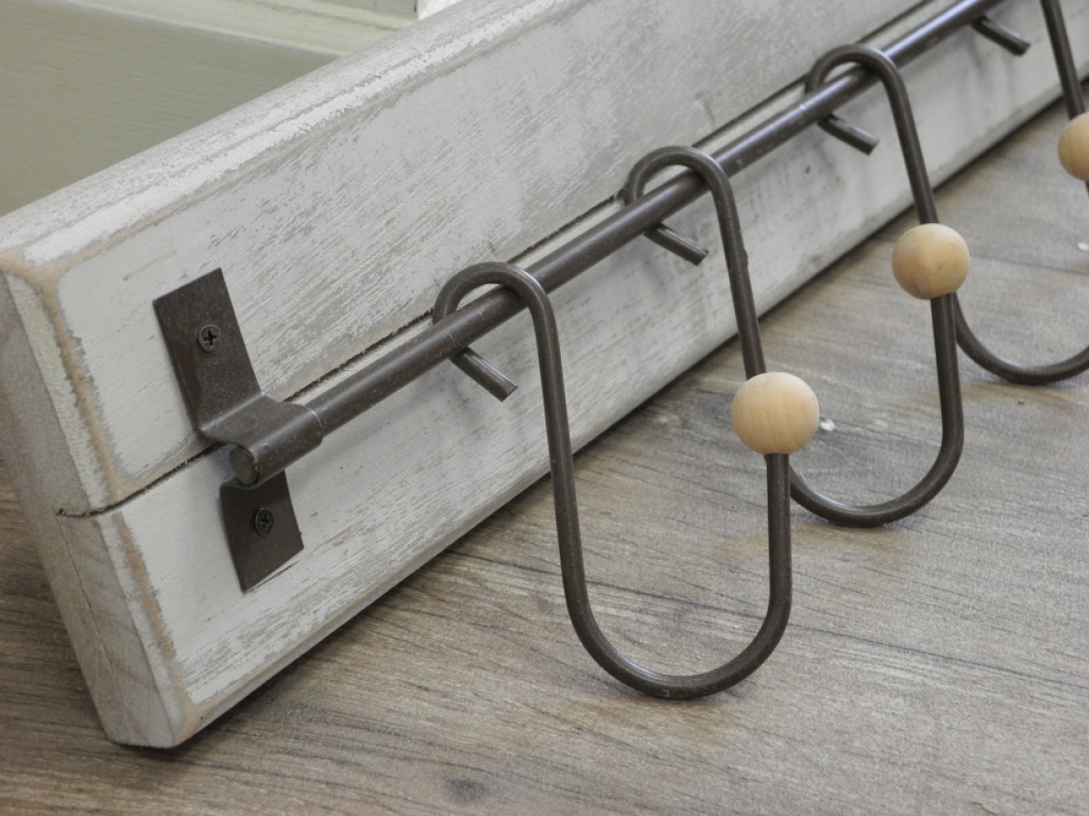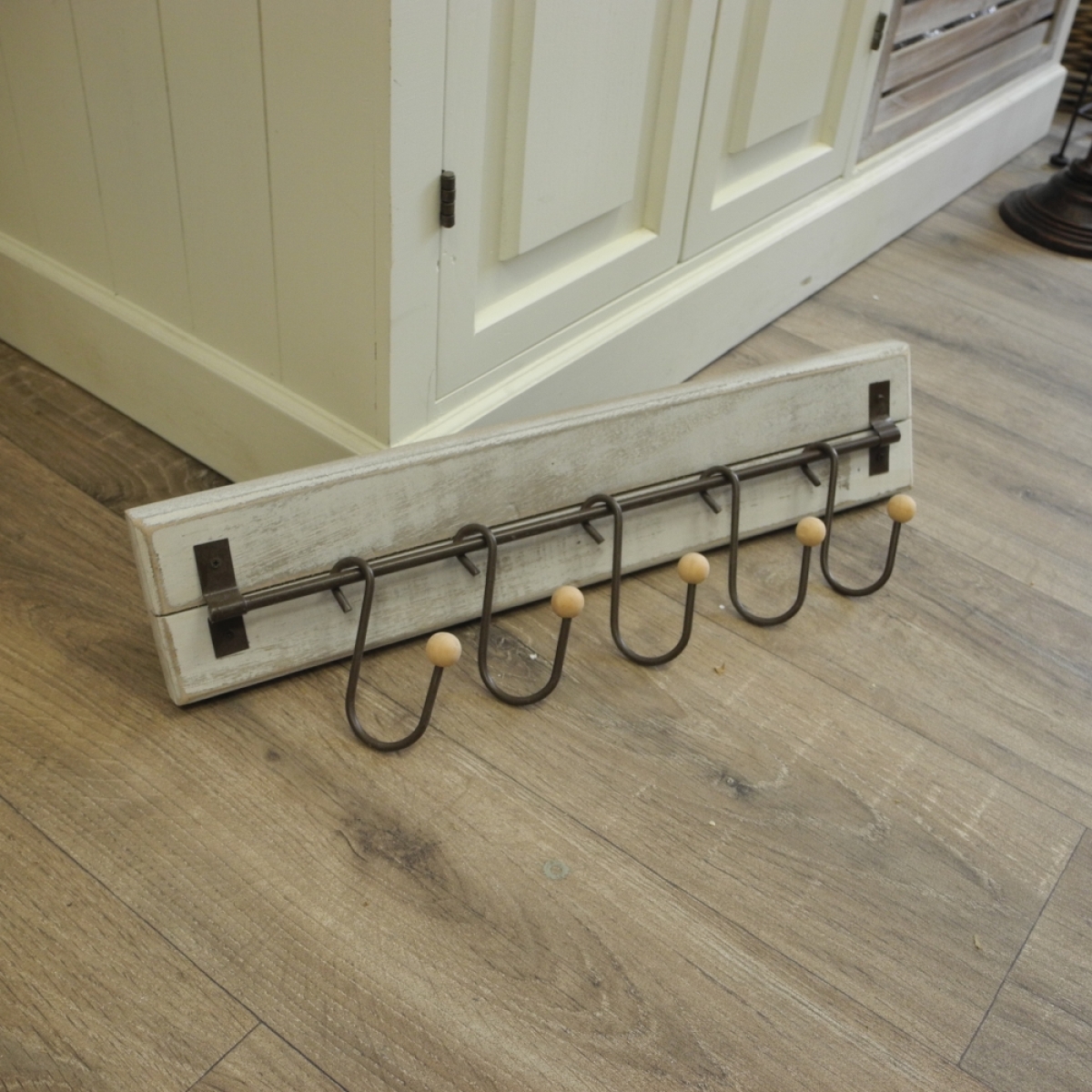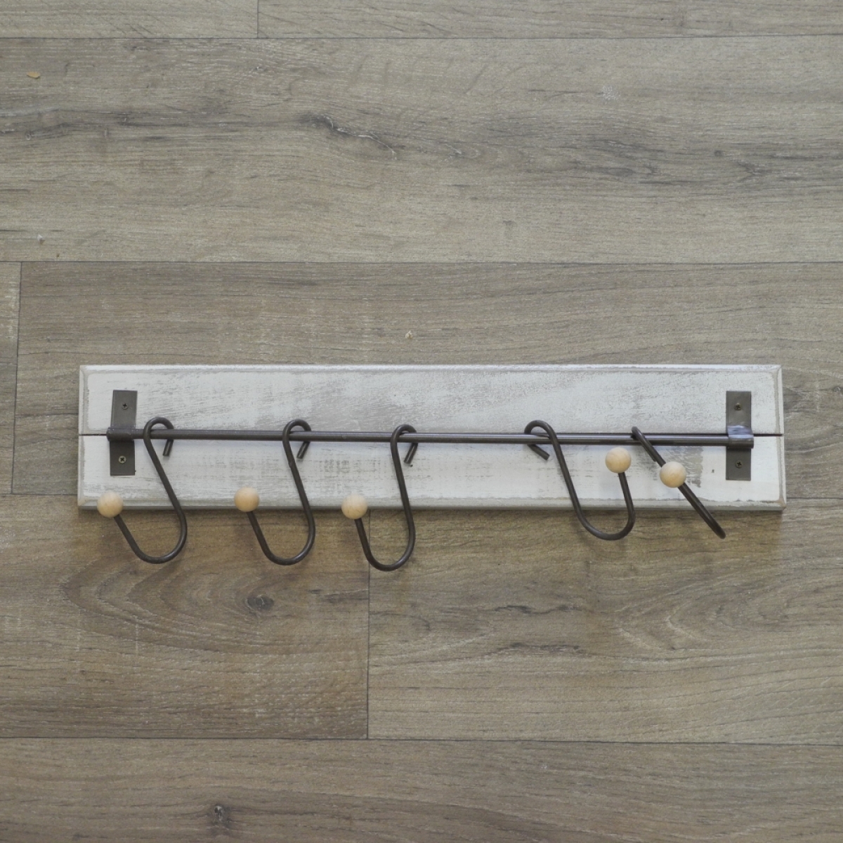 Dřevěný věšák v retro stylu s pěti pohyblivými háčky zakončené kuličkou, aby se nepoškodil povrch výrobku, který budete na háčky zavěšovat.