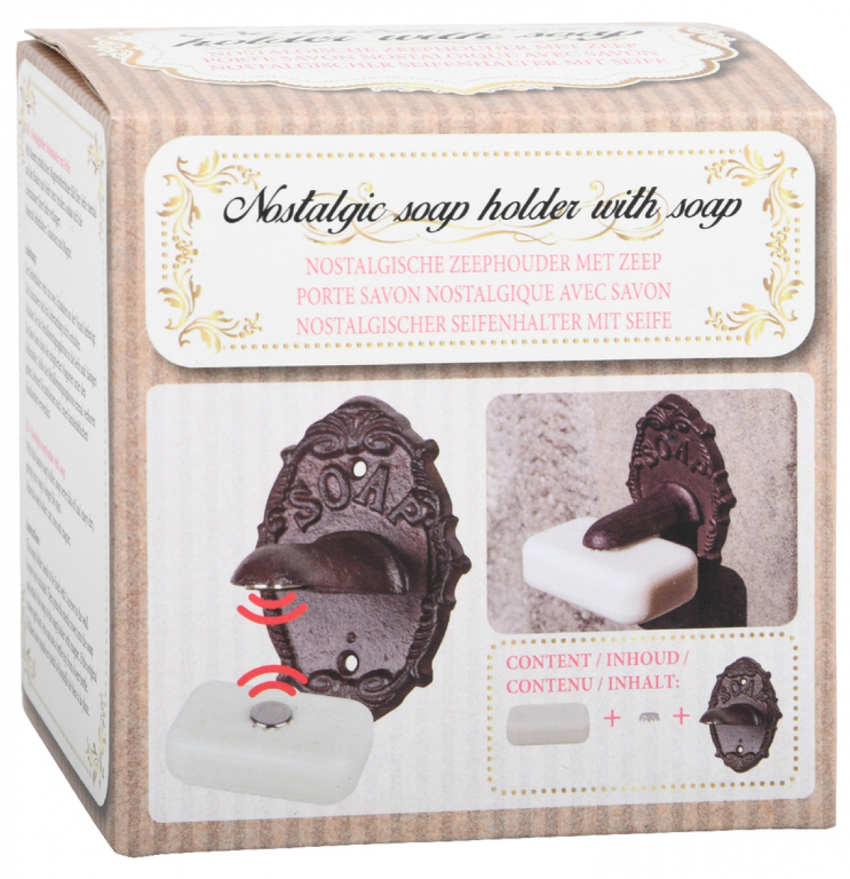 Držák na mýdlo snadno připevníte na stěnu za pomoci dvou šroubků. Baleno v dárkové kartonové krabici.