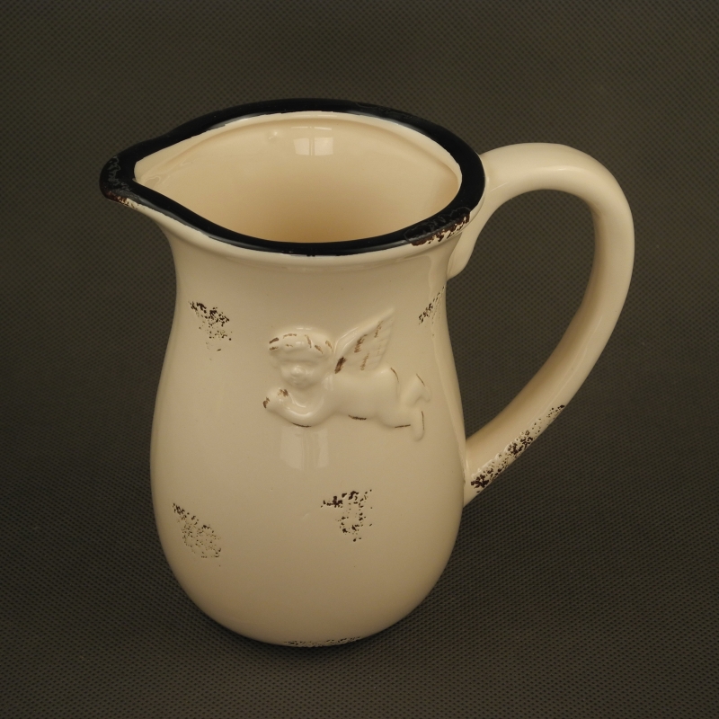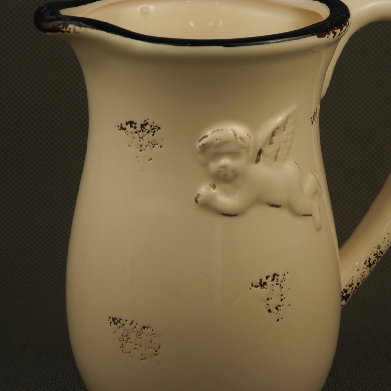Džbánek s andílkem v retro stylu o rozměrech - výška 15.5cm, šířka i s ouškem 16.5cm, je vyroben z keramiky.