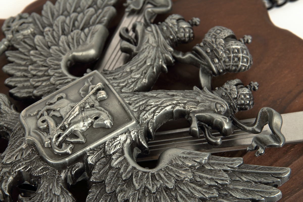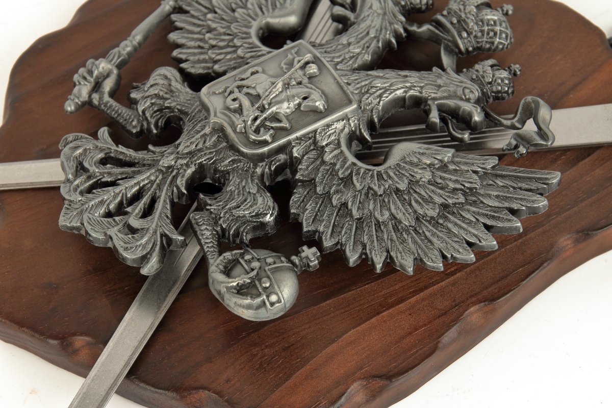 erb na dřevě - v provedení z šedého kovu S MOTIVEM CARSKÉ ORLICE