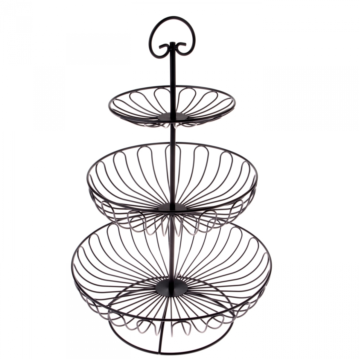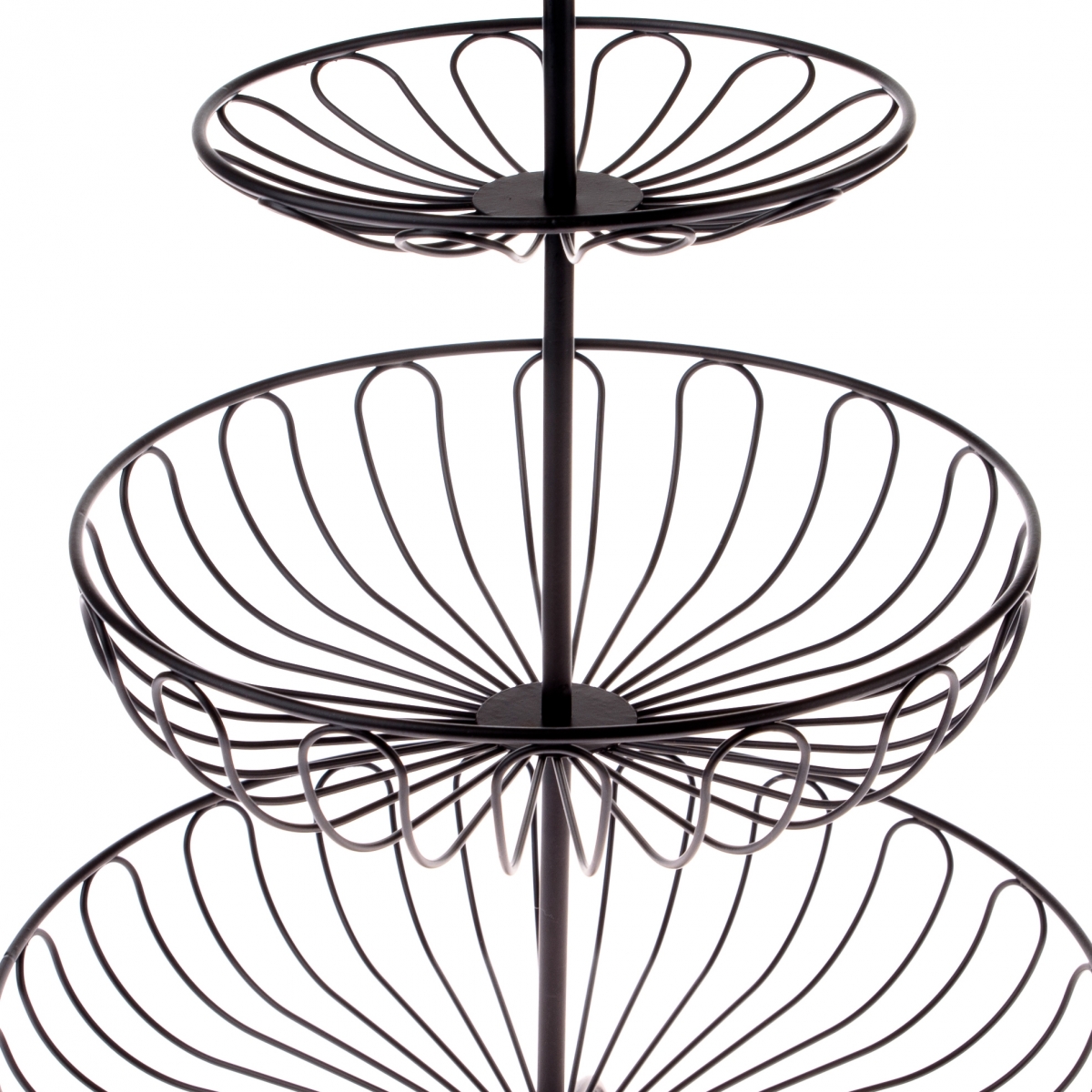 Etažér je vyroben z kvalitní kovové konstrukce a praktickým doplňkem v podobě kovového kroužku, který usnadní jeho přenášení. Tři patra vytvoří prostorný a stabilní prostor, který umožní vystavit na malém stolu více než kdy dříve!