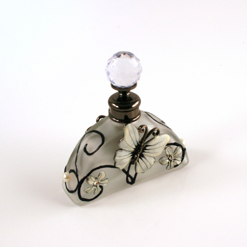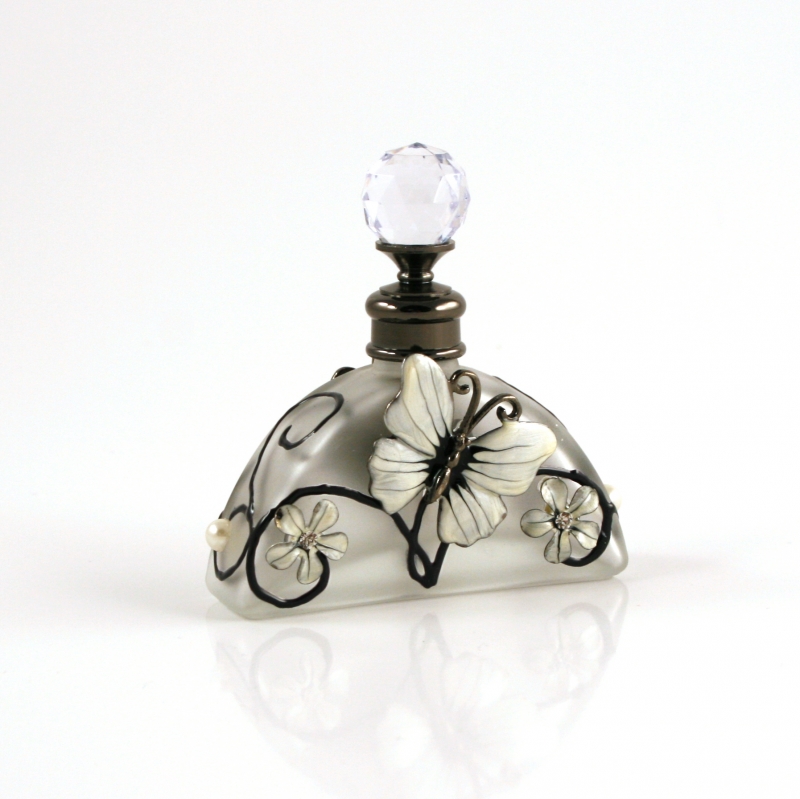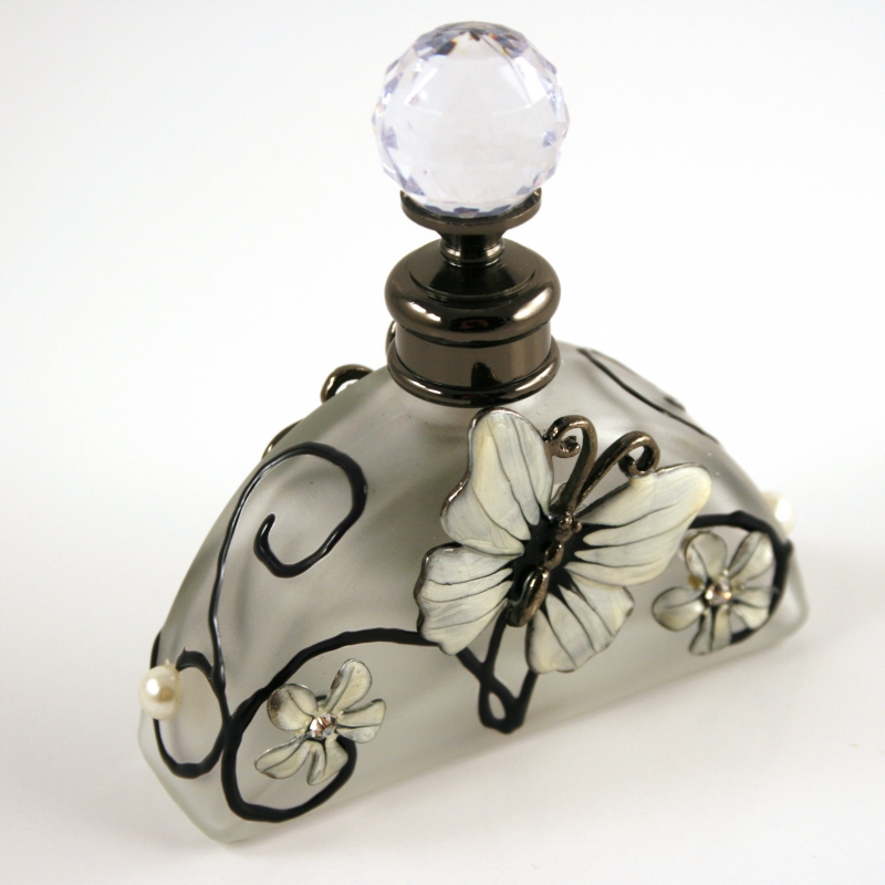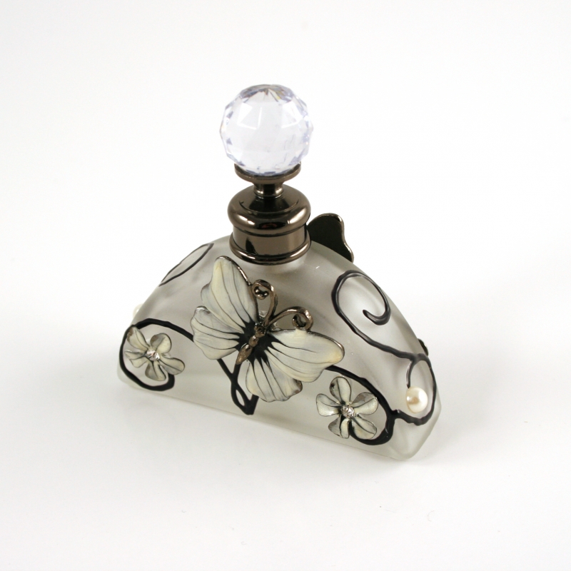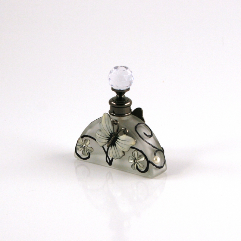Flakón na parfém černo-bílý s motýlem 8x8cm