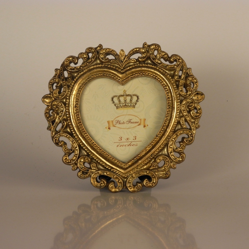 Fotorámeček má šířku 13,5 a výšku 13cm. Vystavíte si v něm jistě fotografie vašich nejmilejších, k čemuž vybízí i jeho tvar – tvar srdce. Polyresin, z něhož je rámeček vyroben, imituje zlatý kovový vzhled a je bohatě prolamován.