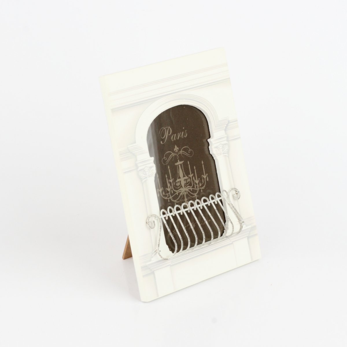 Rámeček má velmi originální vzhled velkého okna s kováním.