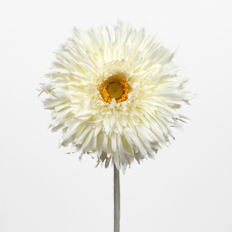 Gerbera bílá velká single 70 cm. Velice krásná dekorace o celkové výšce 70cm. Průměr květu 16 cm.