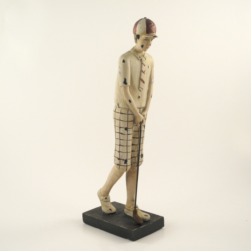 Golf - postavička golfisty se může stát nezvyklou a neotřelou ozdobou v domácnosti. Výborně se hodí též jako dárek, zejména pro příznivce tohoto atraktivního sportu. Golfista je vyroben z odolného polyresinu, stojí na čtvercovém půdorysu o rozměrech 7 x 8 cm. Postavička je vysoká 32 cm.
