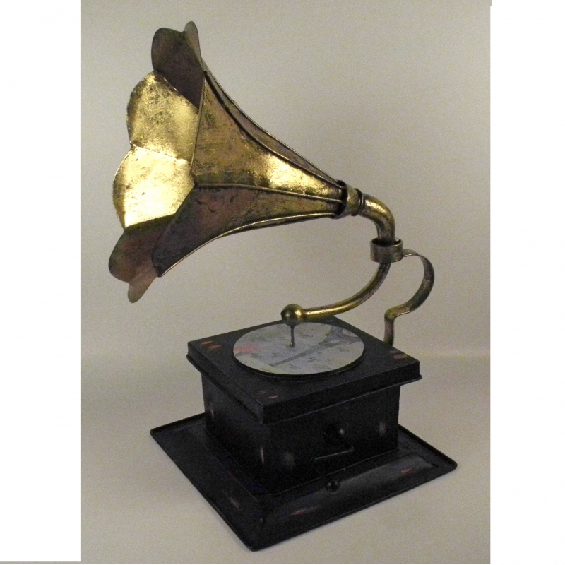 Jedná se o nefunkčí plechovou repliku starého gramofonu. Vhodné pro umístění např. do restaurace.