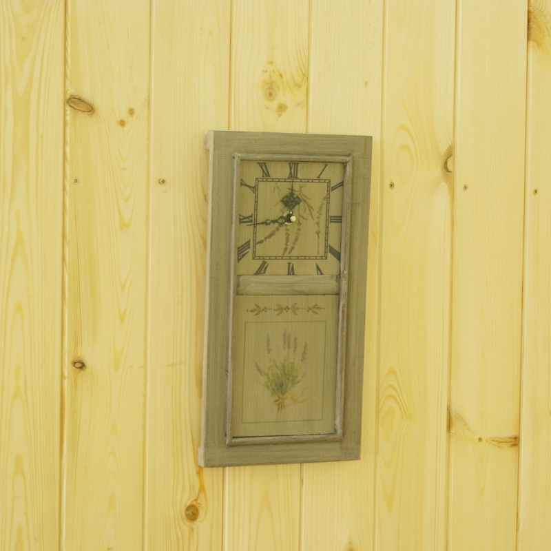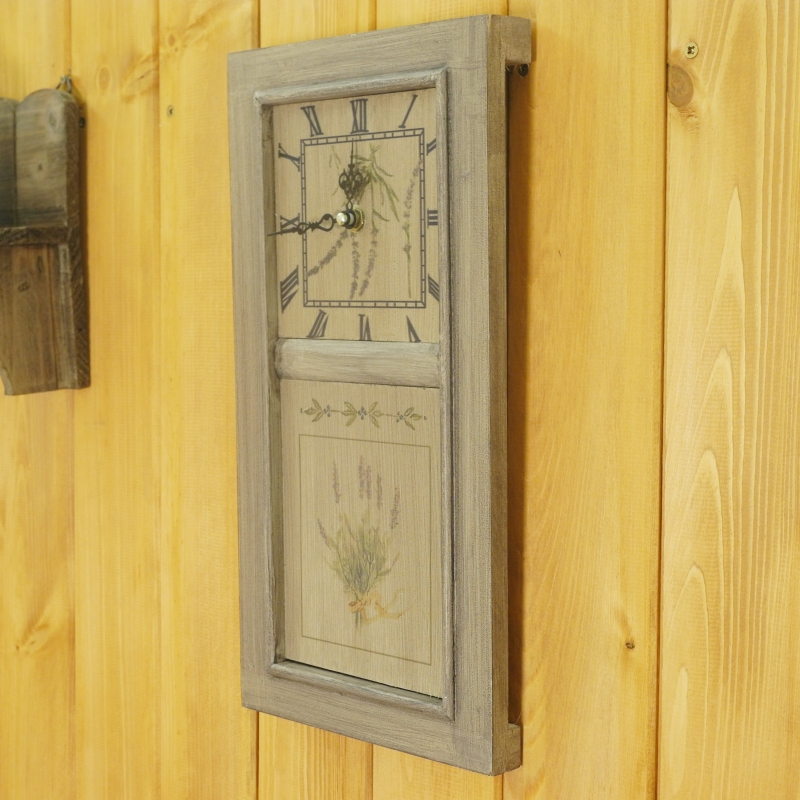 Ciferník s velkými římskými číslicemi a pěkně vypracovanými rafičkami je umístěn v horní části těchto nástěnných hodin.Jejich spodní část je ozdobena něžným květinovým motivem.