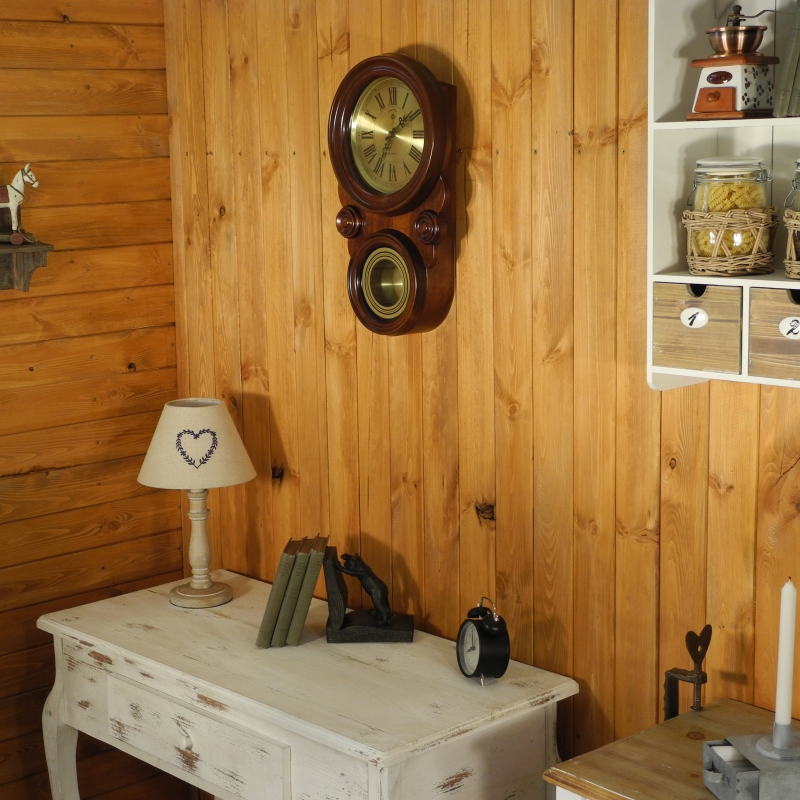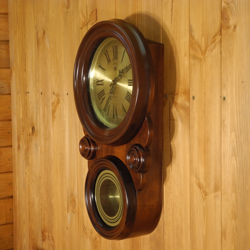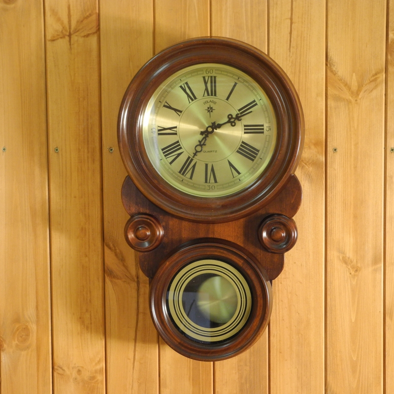 Hodiny, které jsou určeny k zavěšení na stěnu, jsou opatřeny kyvadlem. Jsou vyrobeny ze dřeva, ciferník i kyvadlo jsou chráněny sklem. Hodiny pohání strojek Ouartz. Na ciferníku jsou dobře čitelné římské číslice. Do detailu jsou propracované i rafičky měřící ubíhající čas.