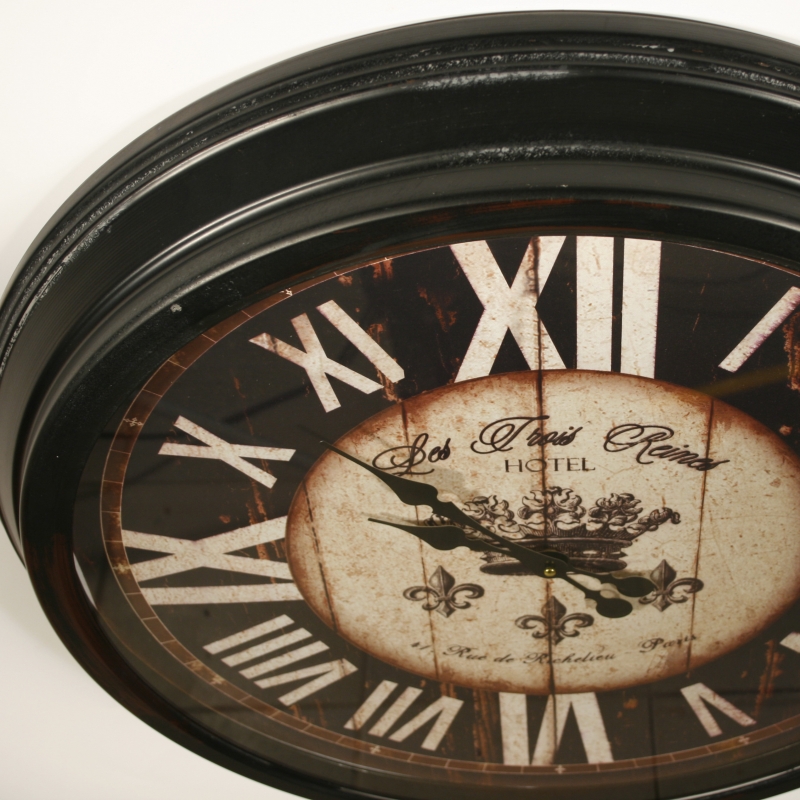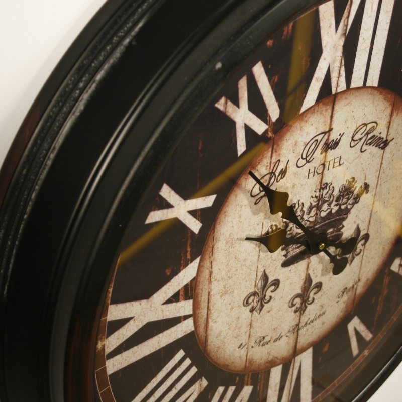 Hodiny jsou vyrobeny z plechu a plastu, jejich ciferník chrání sklo. Využijete je nejen doma, ale např. i v restauraci, hotelu či jiném podobném podniku.