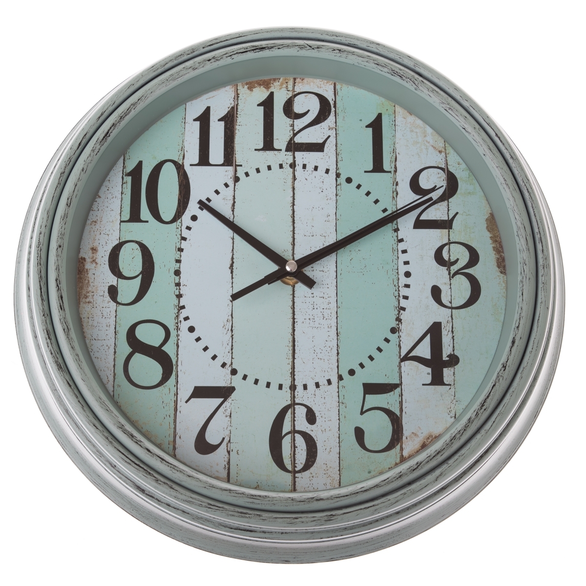 Hodiny do kuchyně v mentolové barvě s oprýskaným vzhledem skvěle zapadnou do venkovsky laděné kuchyně. Ciferník v prkenném designu je opatřen dobře čitelnými číslicemi, na které uvidíte i z větší vzdálenosti.
