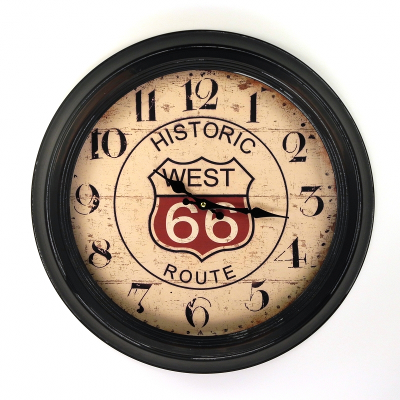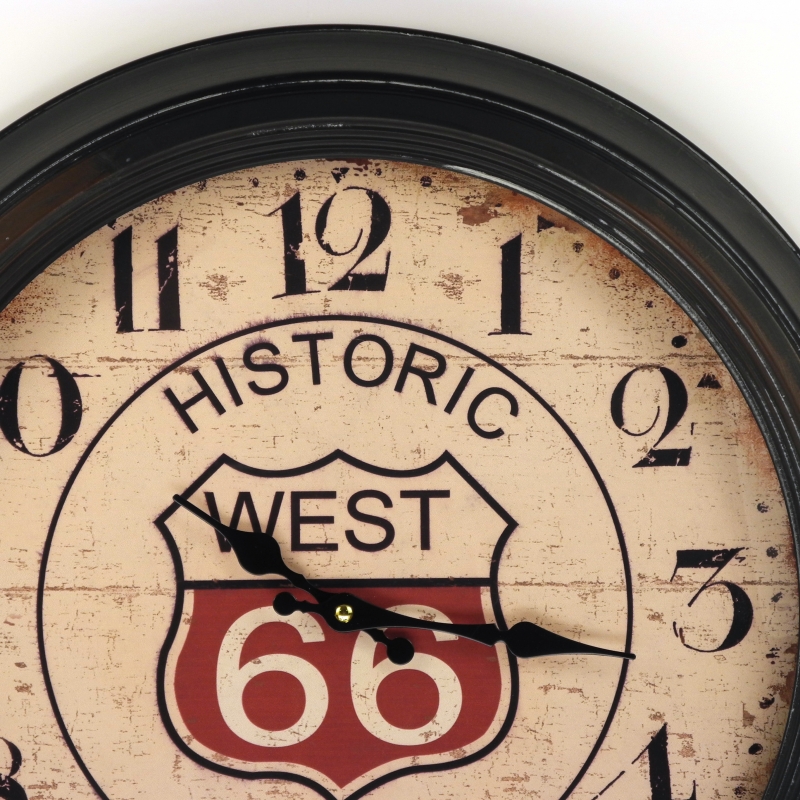 Hodiny svým pojetím jsou určeny především do barů, klubů a do restaurací. Jejich kovový plášť o průměru 47cm a design HISTORIC WEST 66 ROUTE umocňuje jejich retro vzhled. Hloubka kovových hodin je 7cm
