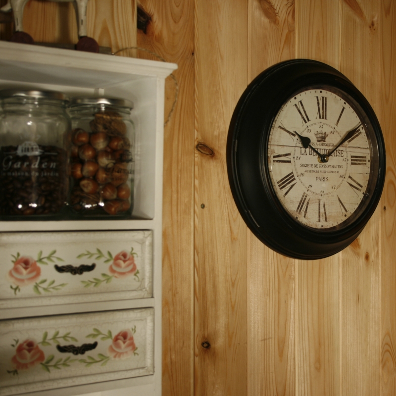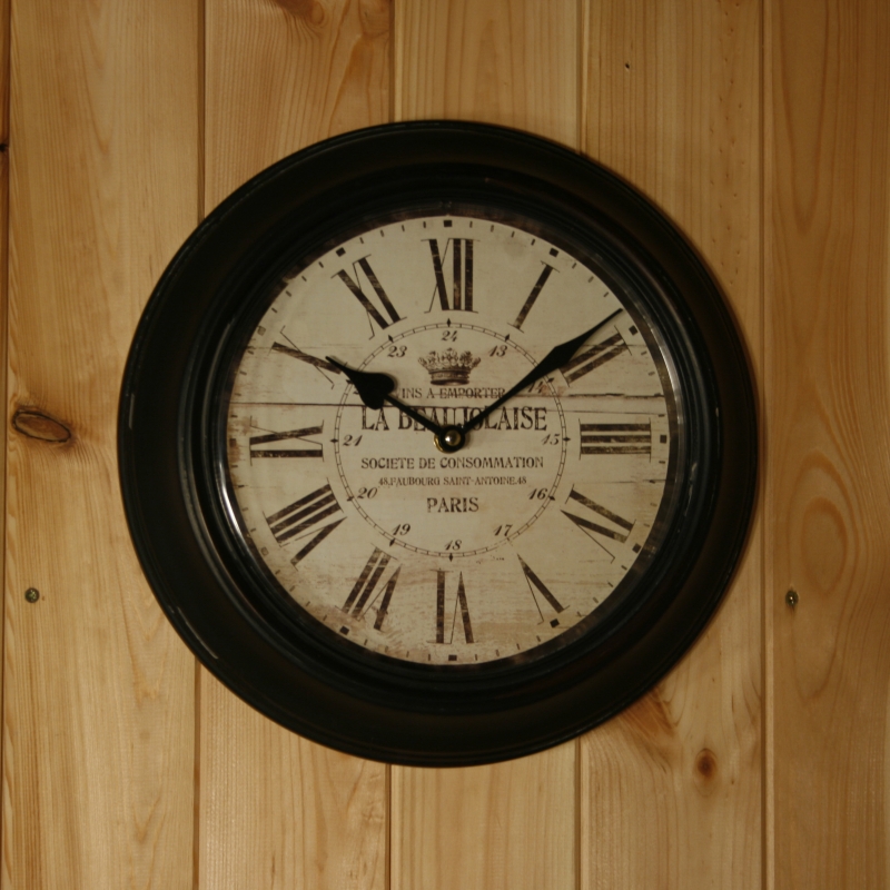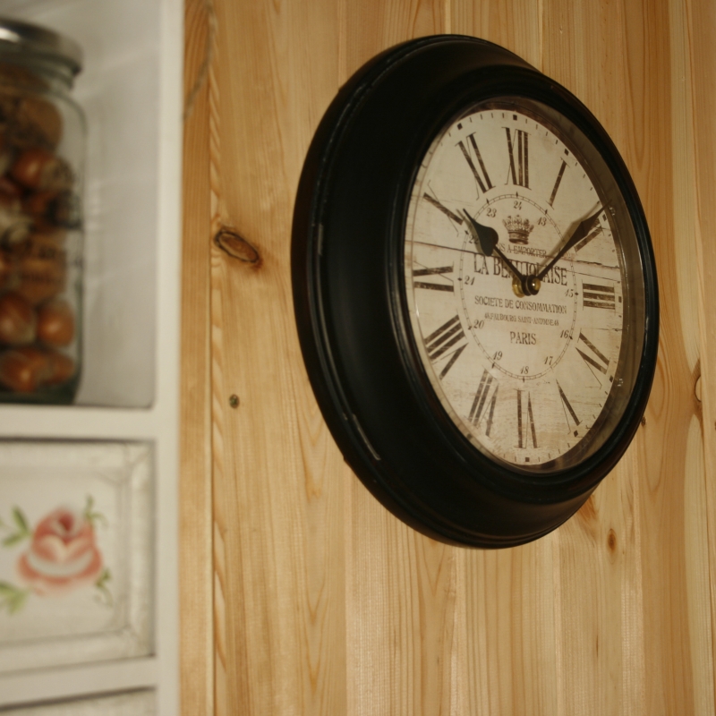 Na hodinách převládá výrazná černá barva. Číslice jsou římské a dostatečně velké. Uprostřed ciferníku najdete ozdobné nápisy.