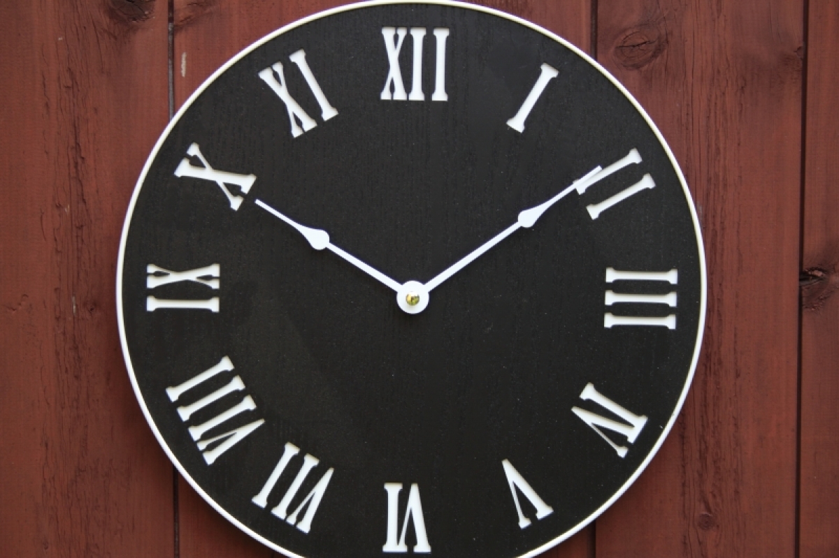 Hodiny nástěnné v černé barvě s římskými číslicemi