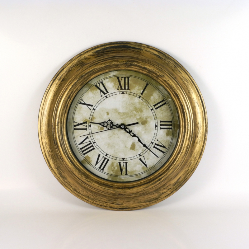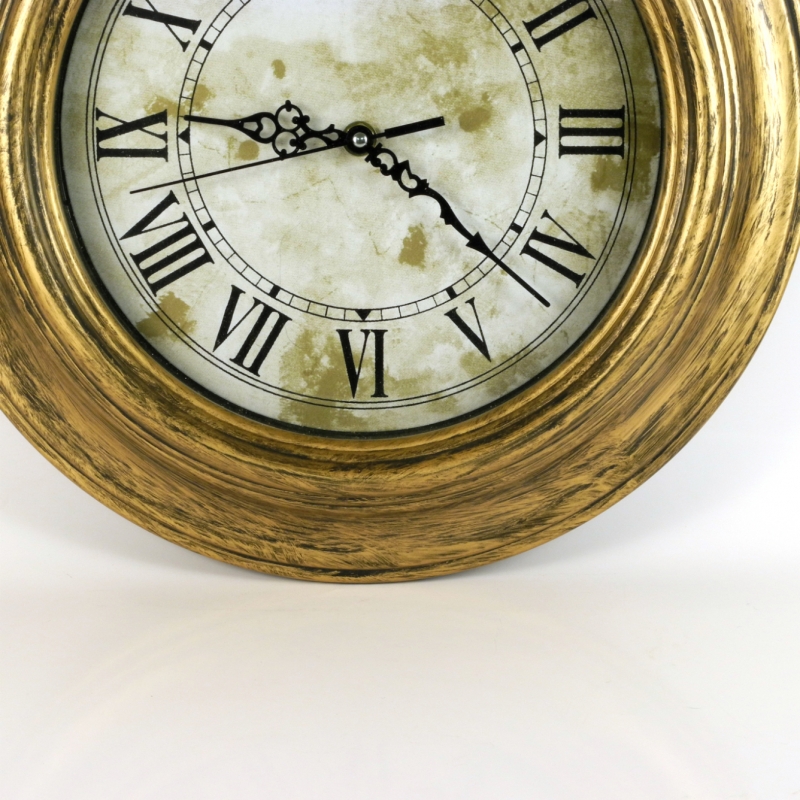 Imitace dřeva. Průměr hodin 35cm, výška (hloubka) 5cm. Hodiny jsou nepoškozené a vztahuje se na ně plná záruka (24 měsíců).