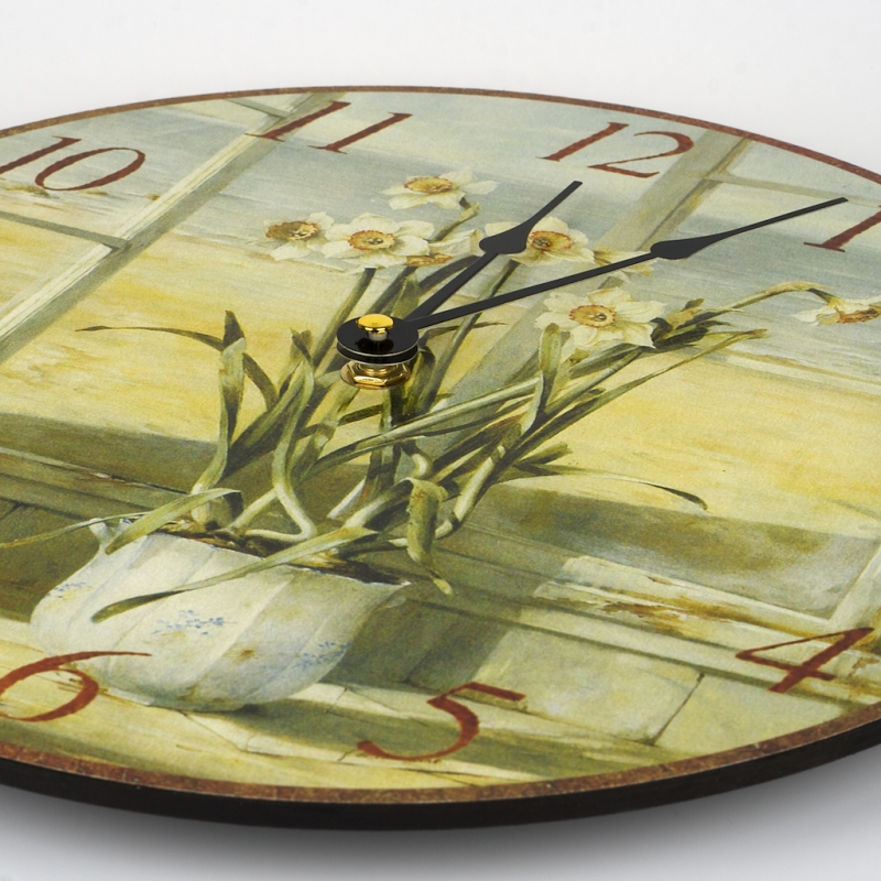 Hodiny nástěnné dřevěné kytka 30cm