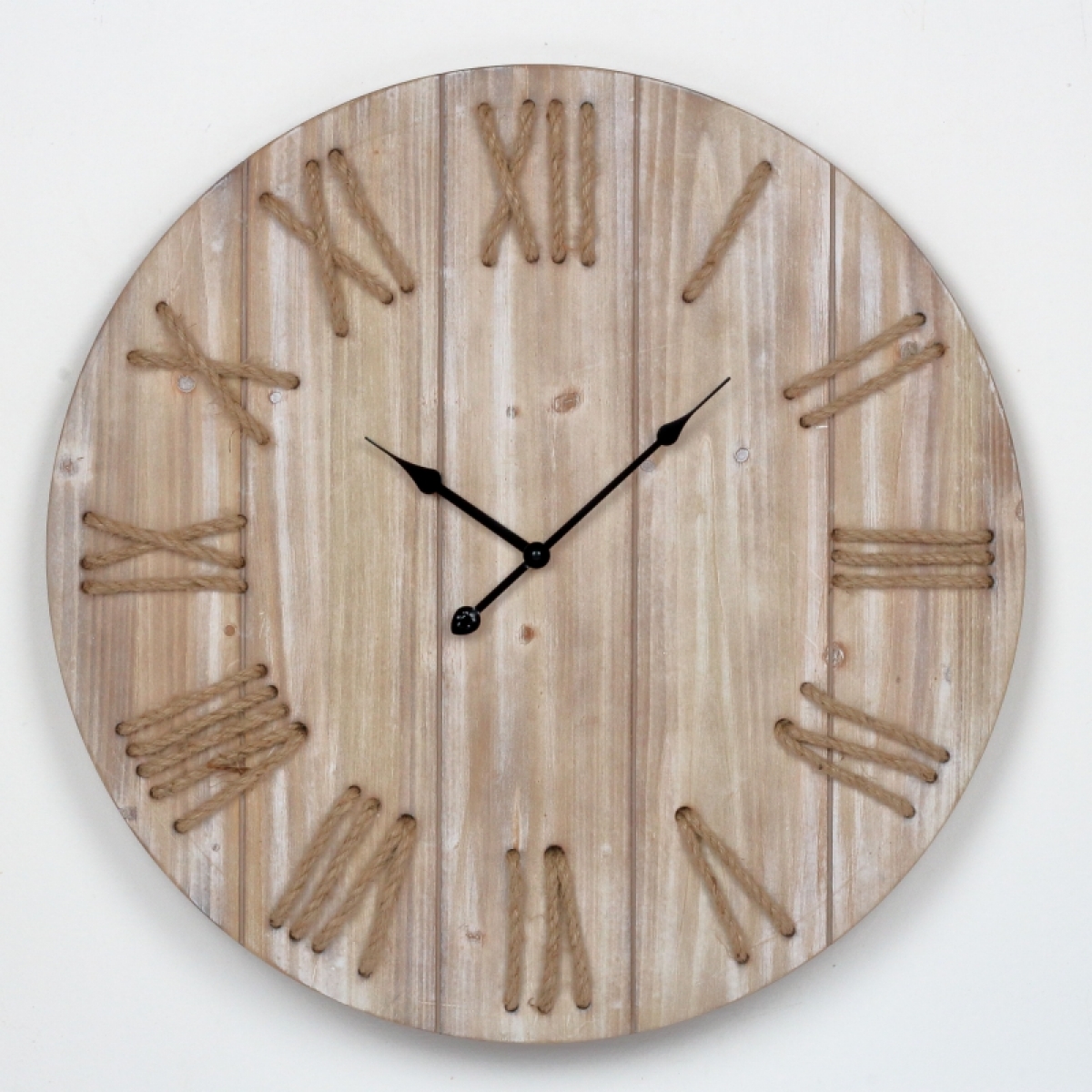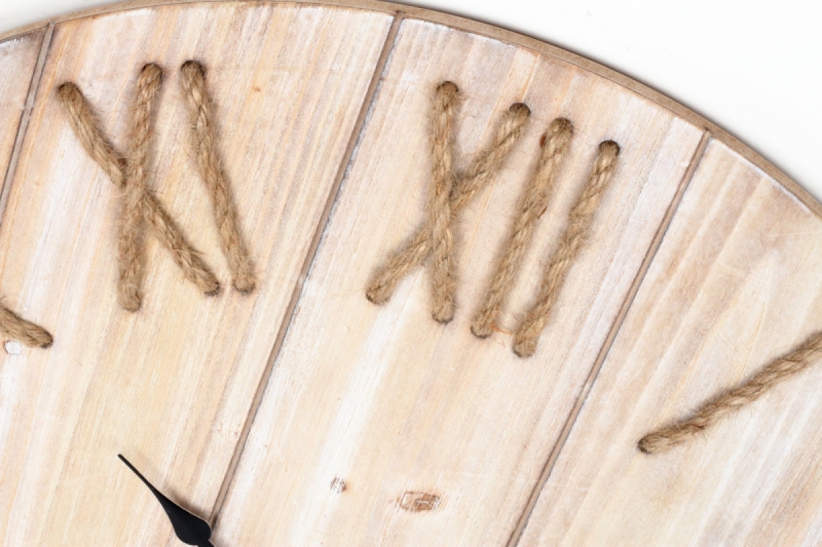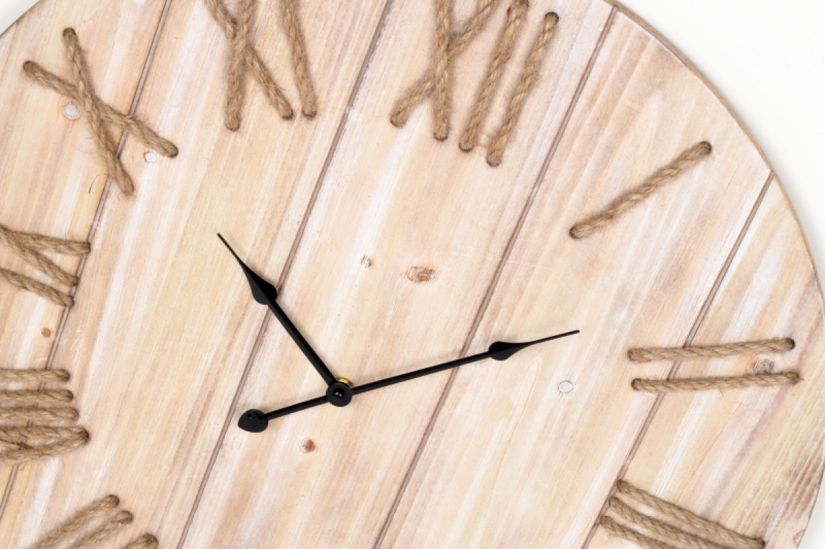 Hodiny nástěnné dřevěné s proplétanými čísly 60cm mají krásný rustikální vzhled. Pokud milujete zemité tóny a přírodní materiály, vzhled těchto hodin Vás bude bavit.