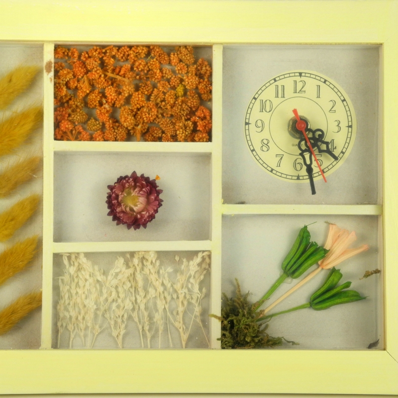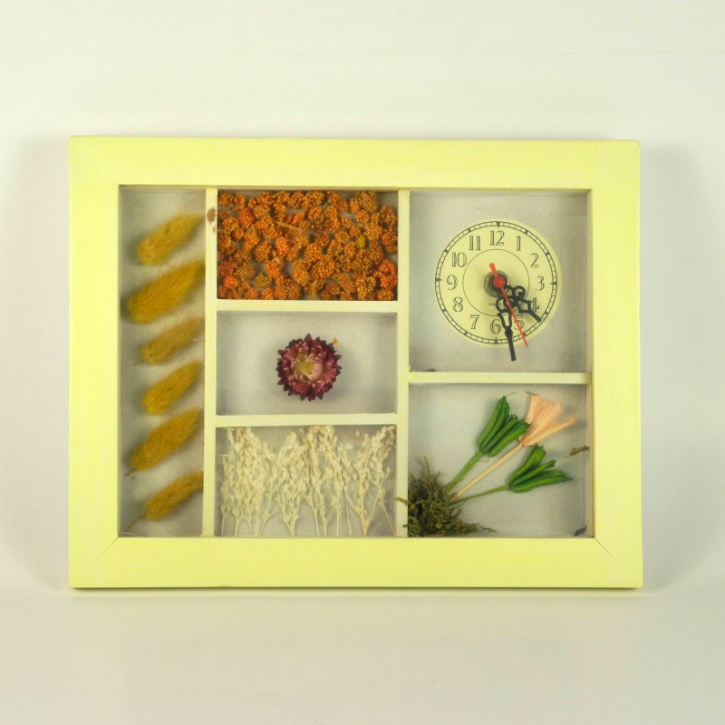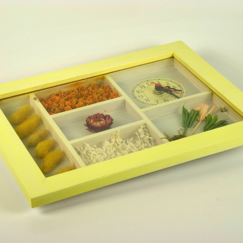 Hodiny nástěnné dřevěné žluté 22x28cm