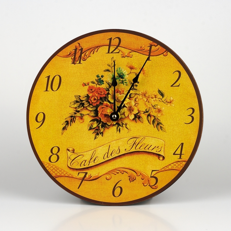Hodiny nástěnné kytička 30cm je velice vydařená dekorace pro zkrášlení Vaší kuchyně v domácnosti či na chalupě. Hodiny nástěnné jsou také výborným dárkem, kterým můžete potěšit jak vaši rodinu tak i přátele. Hodiny mají průměr 30cm a strojek pohání jedna AA 1.5V baterie.