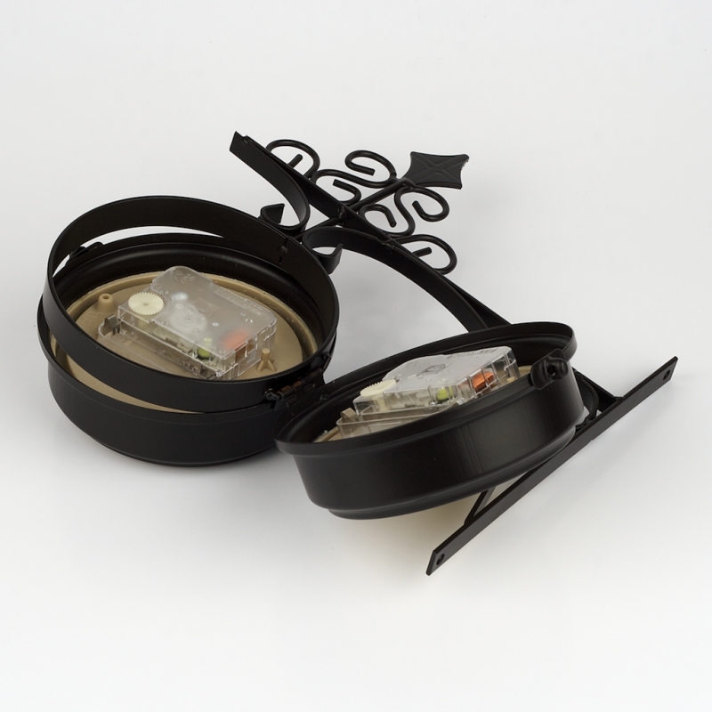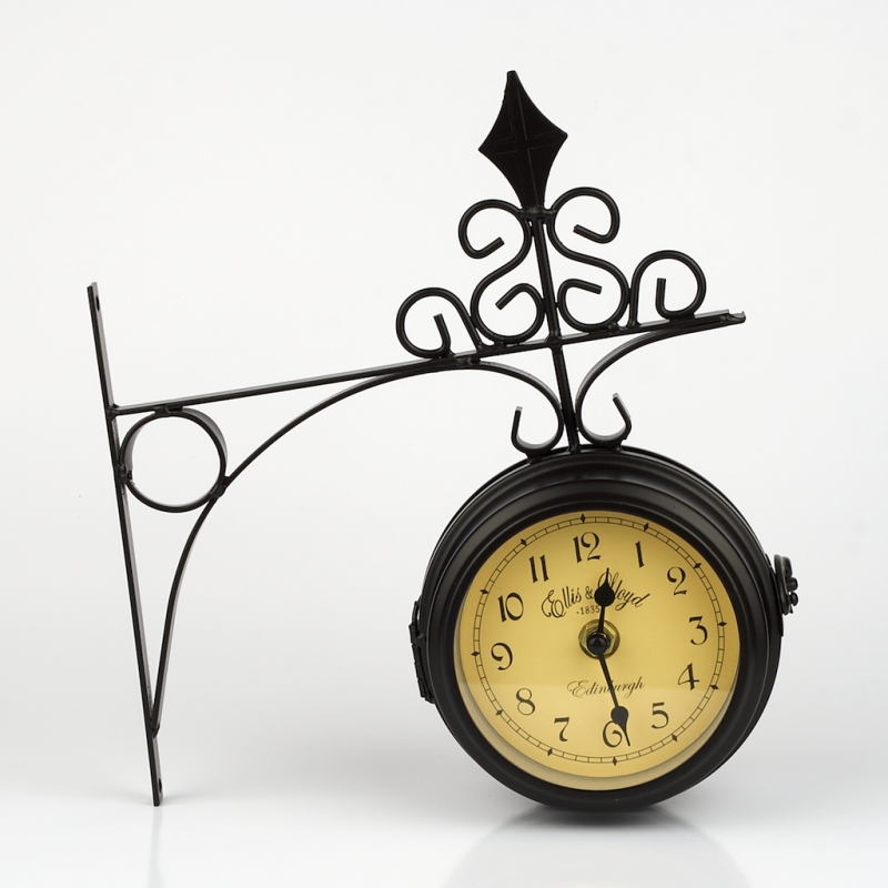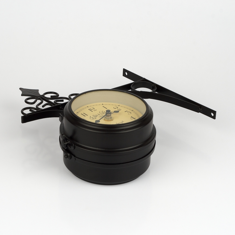 Hodiny nástěnné oboustranné 23x28x9cm s ciferníkem o průměru 11cm a vnějším rozměrem včetně konstrukce 23x28x9cm. Tyto retro hodiny jsou vhodné jako dárek nebo dekorace do vaší domácnosti či firmy. Hodiny se přišroubují za pomocí dvou šroubků a hmoždinek (nejsou součástí dodávky) na stěnu. Hodiny nástěnné v retro stylu jsou rozklápěcí a každá ze dvou částí funguje na jednu tužkovou AA 1,5V baterii.