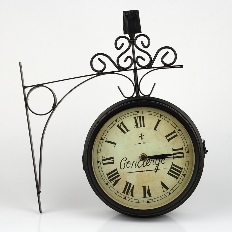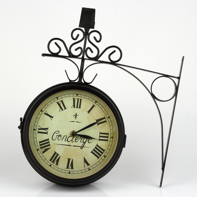 Hodiny nástěnné oboustrané 38x32x10cm s ciferníkem o průměru 21cm a vnějším rozměrem včetně konstrukce 38x32x10cm. Tyto retro hodiny jsou vhodné jako dárek nebo dekorace do vaší domácnosti či firmy. Hodiny se přišroubují za pomocí dvou šroubků a hmoždinek (nejsou součástí dodávky) na stěnu. Hodiny nástěnné v retro stylu jsou rozklápěcí a každá ze dvou částí funguje na jednu tužkovou AA 1,5V baterii.