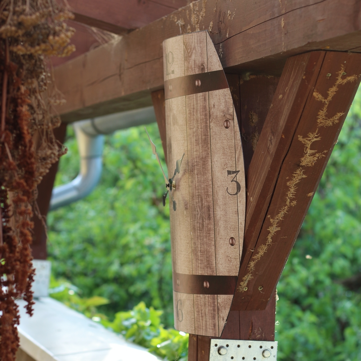 Hodiny ve stejném designu najdete v nabídce také s elegantními nápisy na sudu.