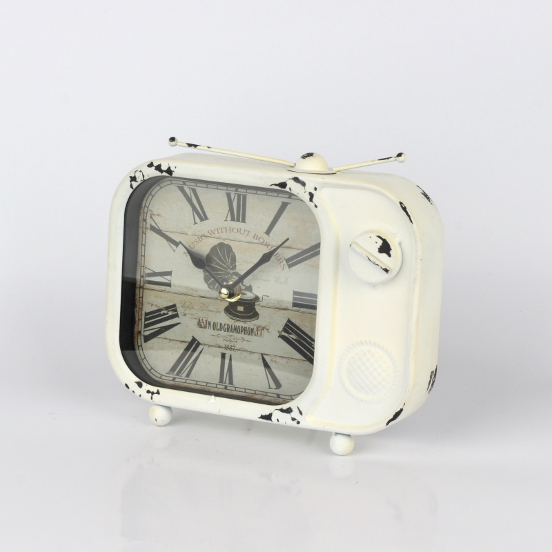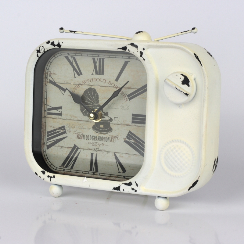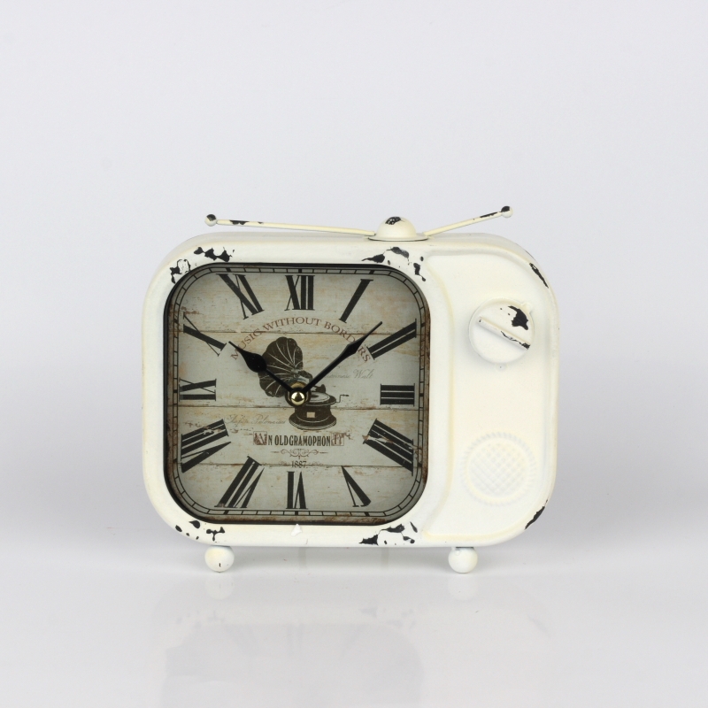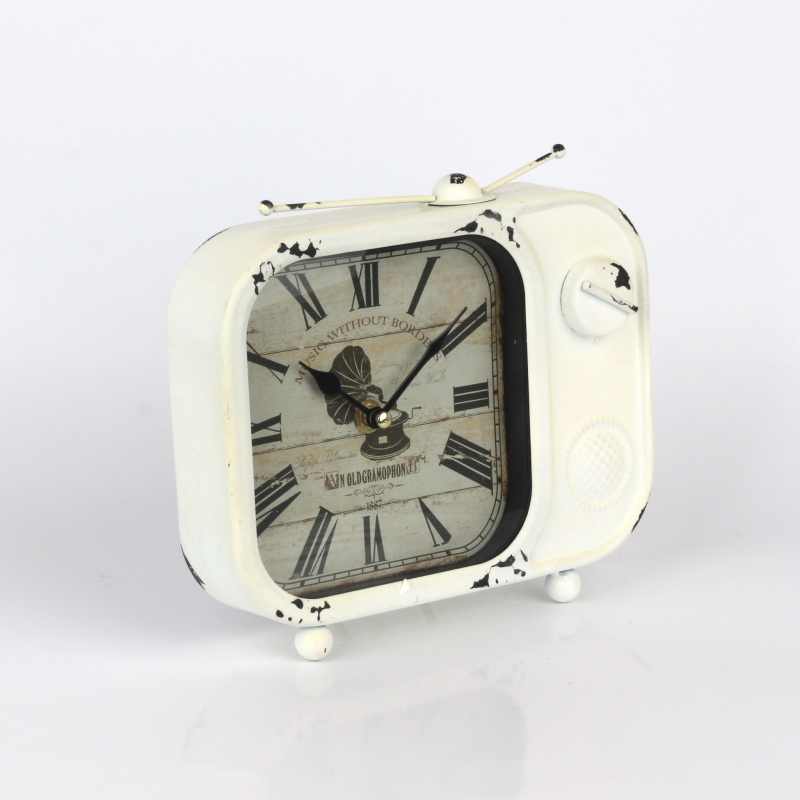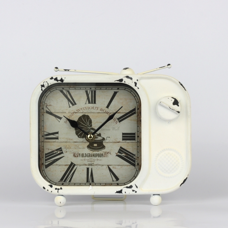 Hodiny stolní Old gramophon bílé 19x5x21cm s výrazným oprýskaným vzhledem jsou originální dekorací do stylového interiéru.