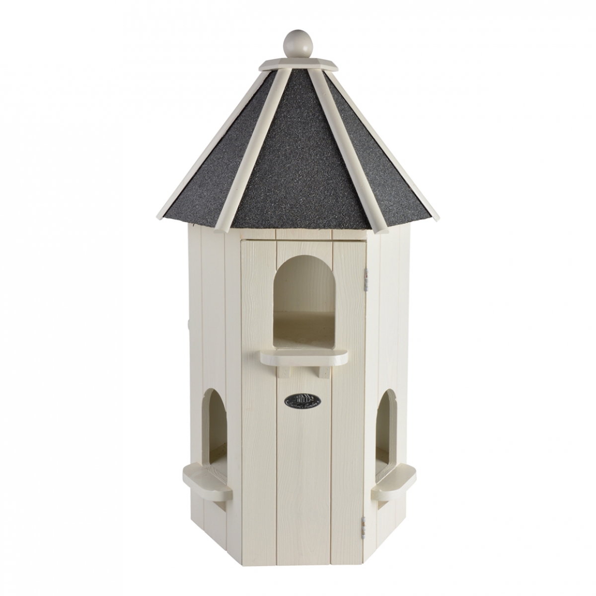 V přírodní barvě s černou stříškou. Pro vytvoření bezpečného prostředí pro holuby je nutno umístit domek na 4 metrový sloupek do tichého, chráněného místa.