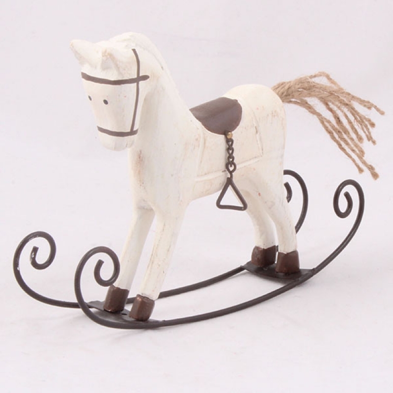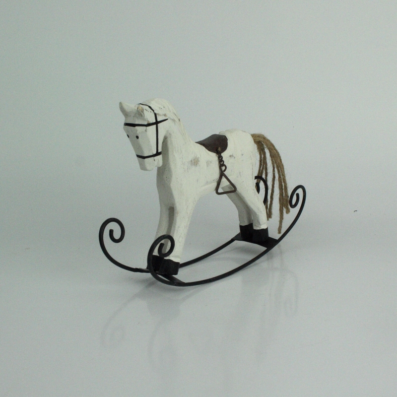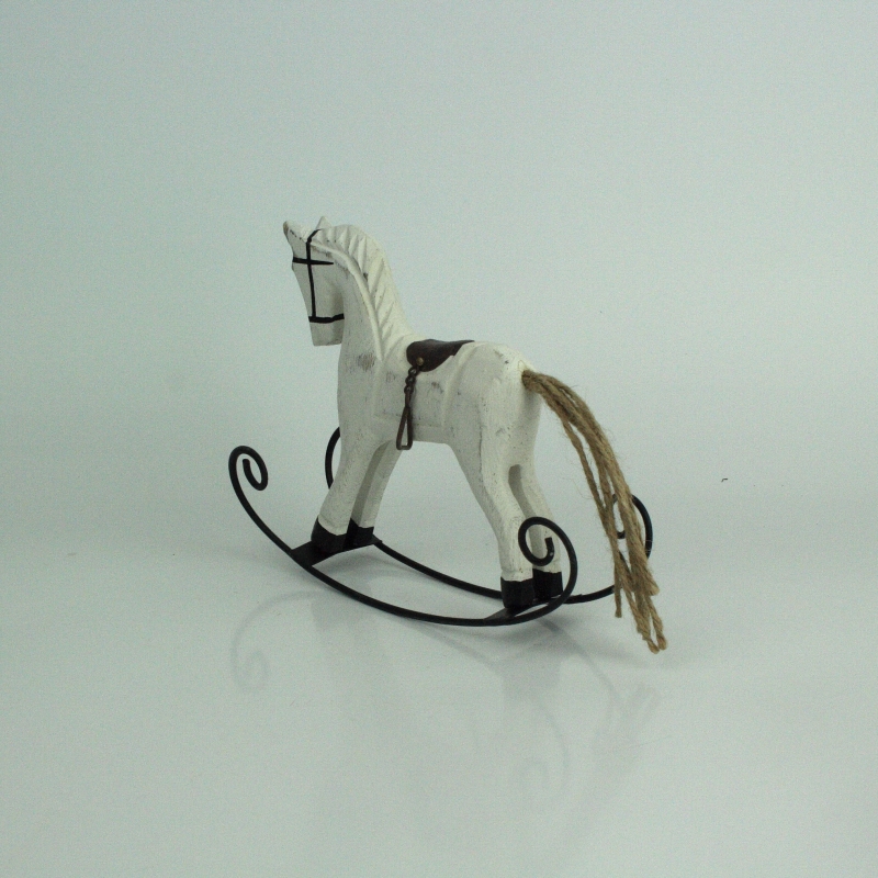 Houpací dřevěný koník bílý 16x12x3,5cm