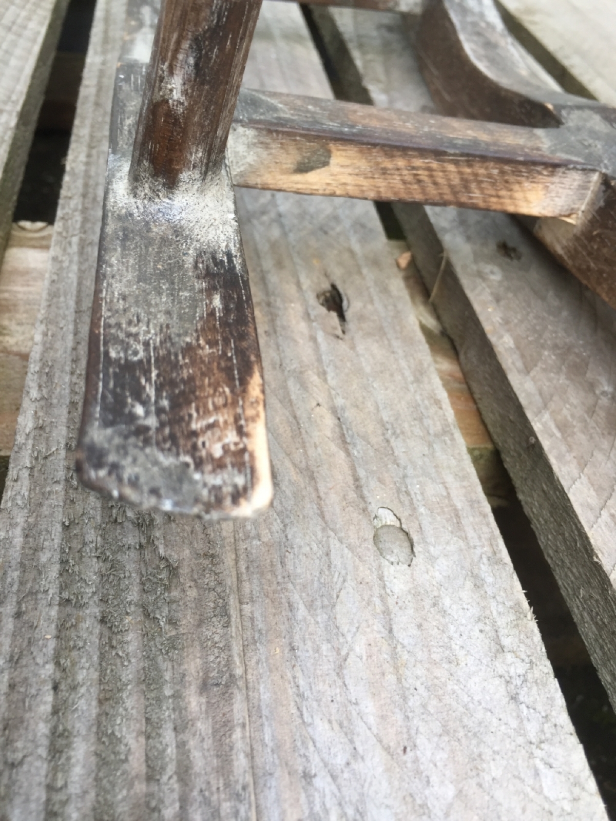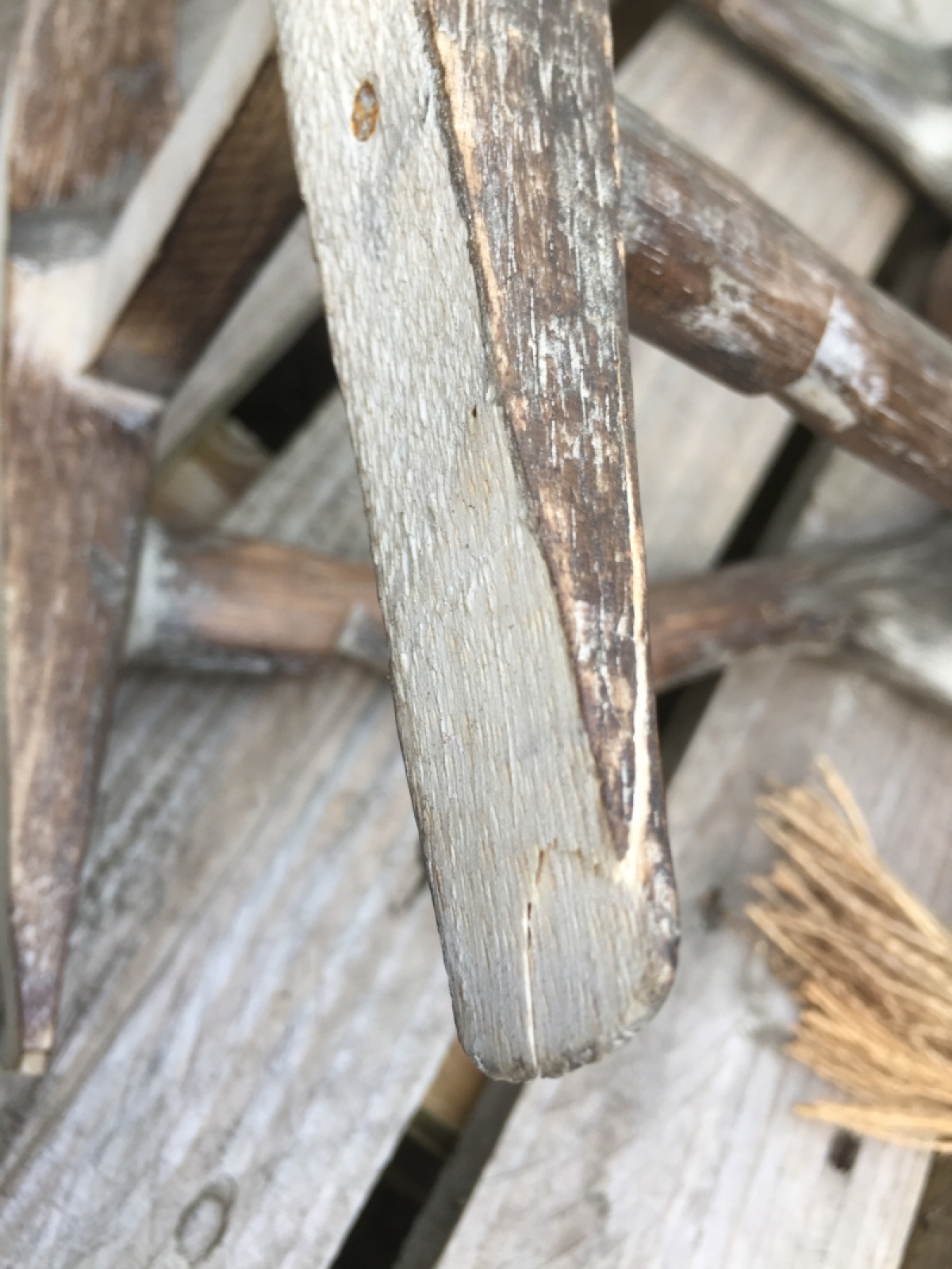 Houpací koník byl vyřazen z důvodu ulomení ouška, které je ale součástí. Lze tedy snadno přilepit lepidlem na dřevo a koník tak může skvěle plně sloužit. Na lyžině je prasklina, která nebrání užívání a není patrná, ale při lepení doporučujeme také slepit.