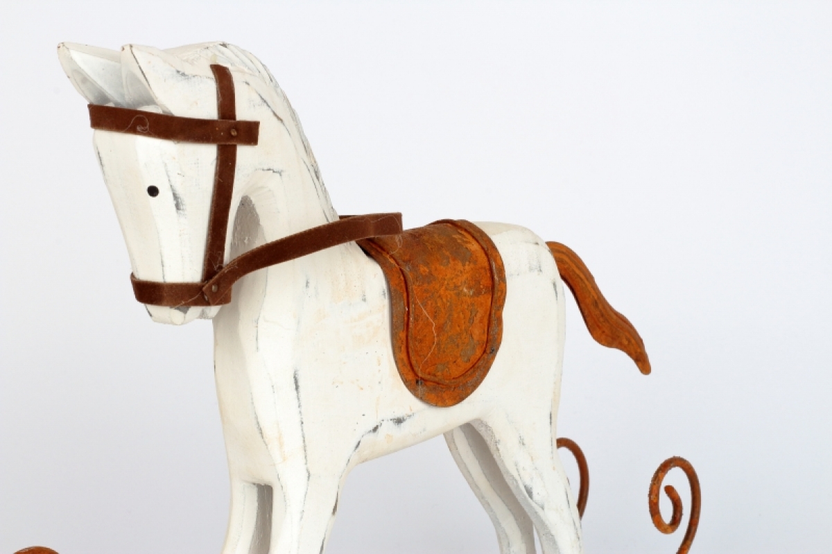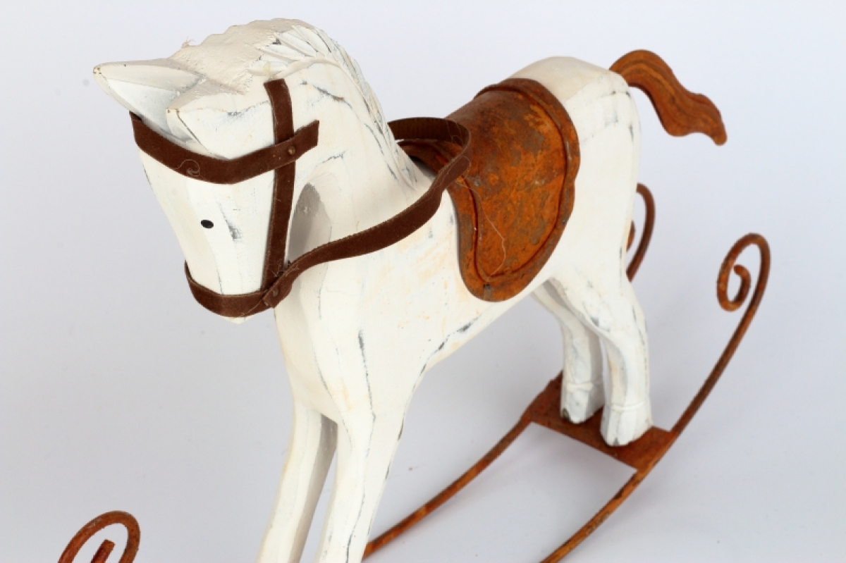 Houpací koník rez si Vás získá na první pohled. Něžná, elegantní bytová dekorace, která svádí myšlenky zpět do dětských let. Připomeňte si kouzelné okamžiky svého dětství při každém pohledu na něj.