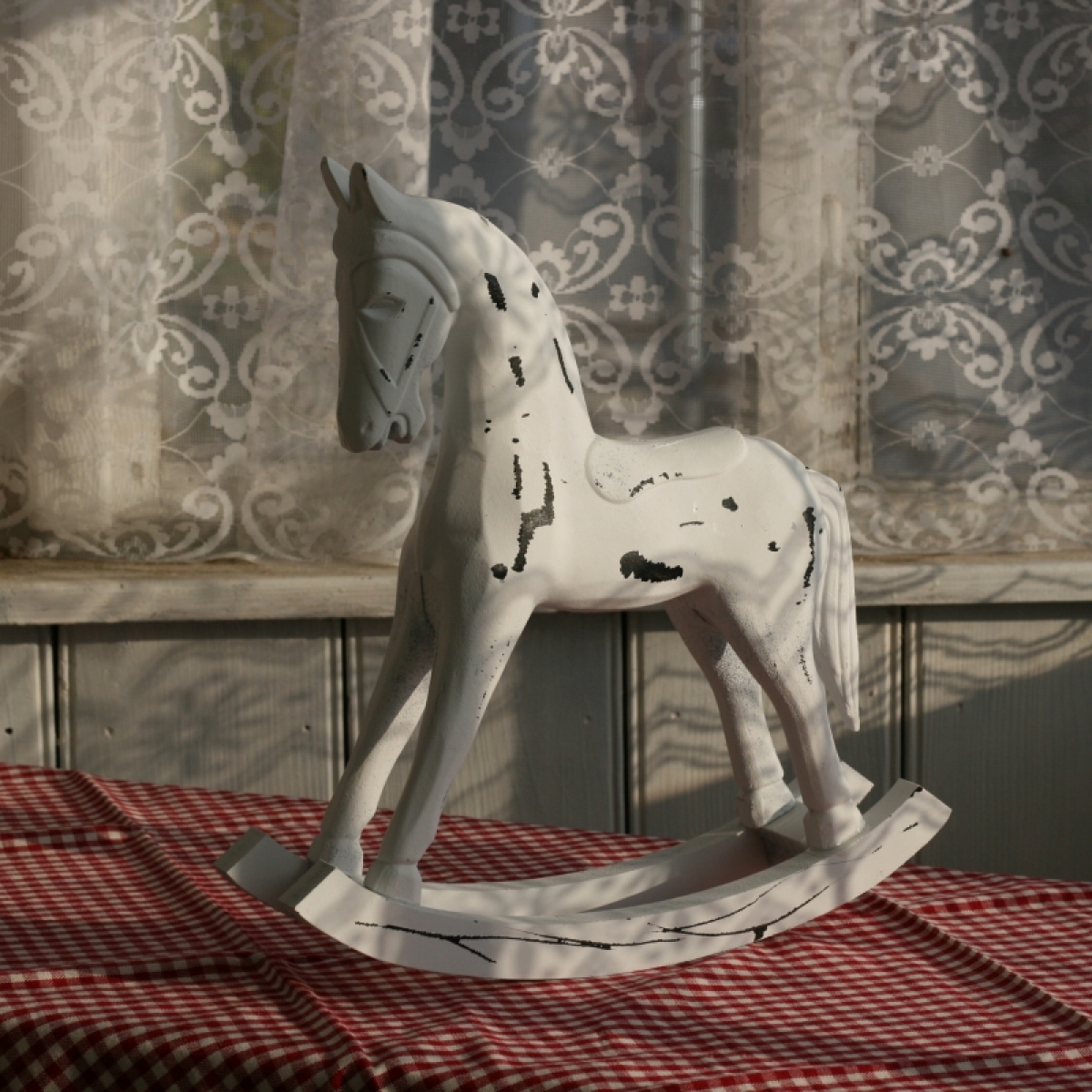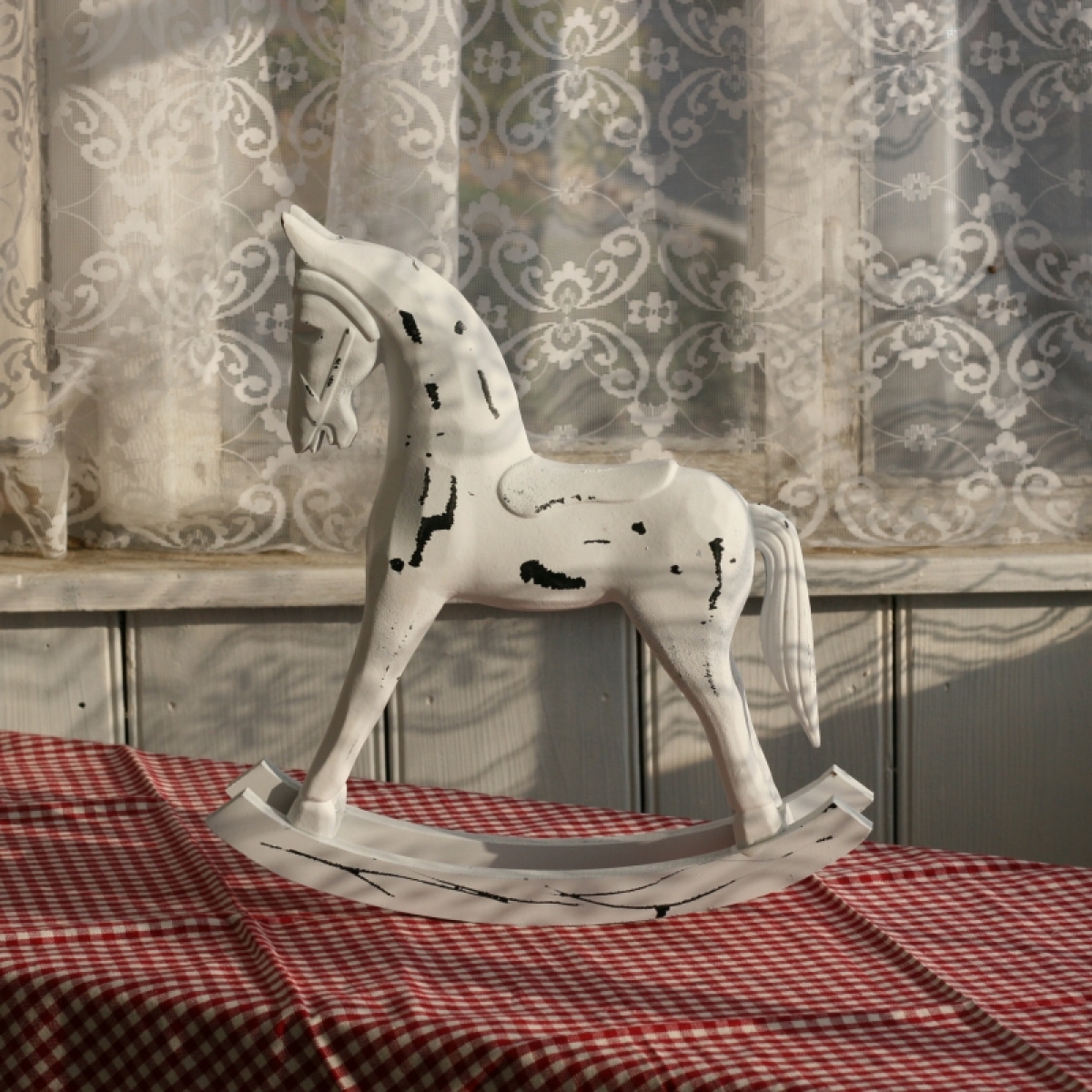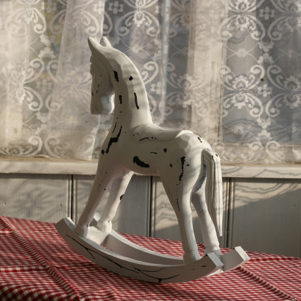 Houpací kůň dřevěný bílý 34x33cm
