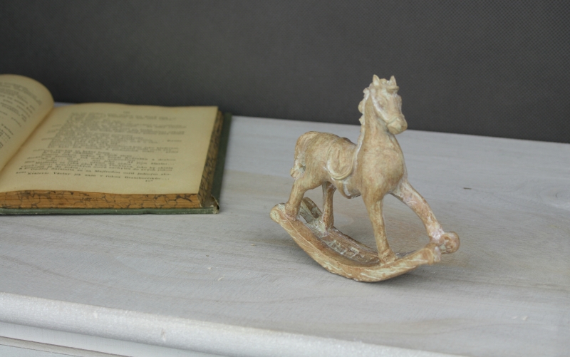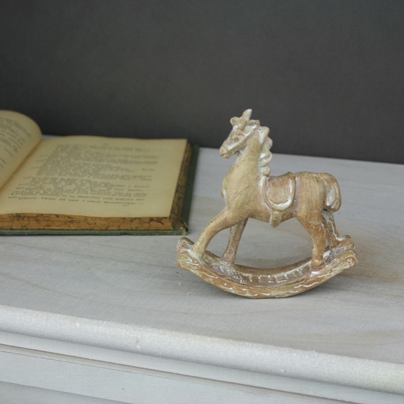 Houpací kůň dřevěný s patinou 9,5cm jako krásná vintage dekorace na komodu či polici.