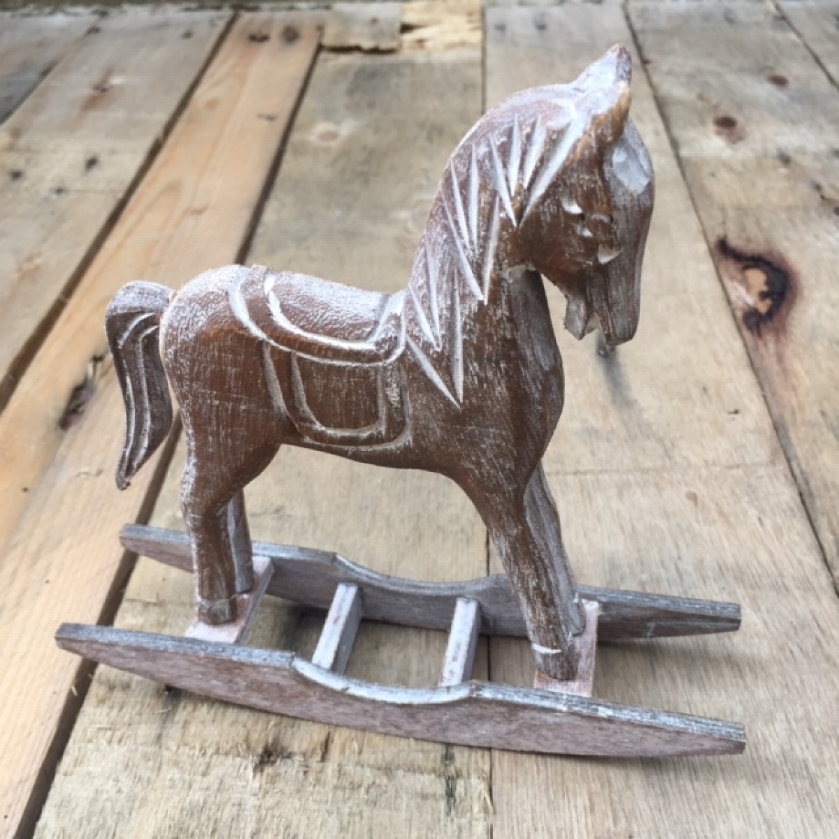 Houpací kůň hnědý 16 x 4 x 15 x cm dřevěný