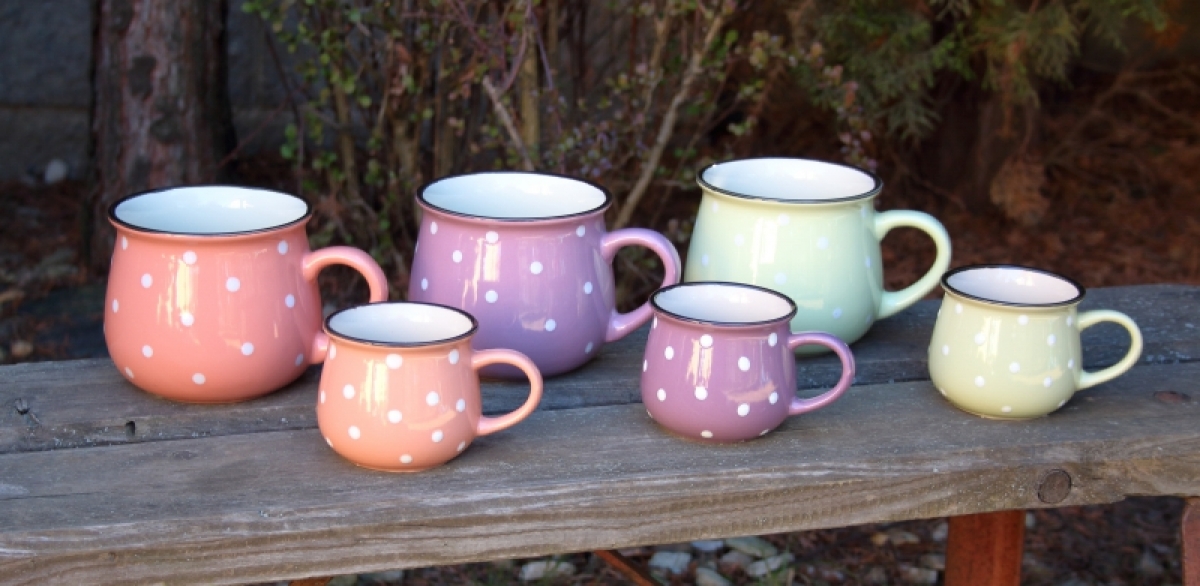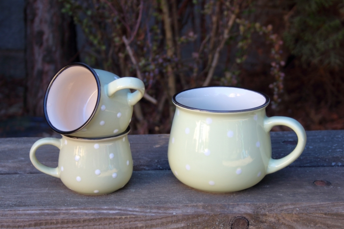 V tomto stylovém buclatém hrnku s puntíky si můžete vychutnat kávu, čaj, kakao nebo třeba mléko a zavzpomínat na dětství, které tento hrnek evokuje.