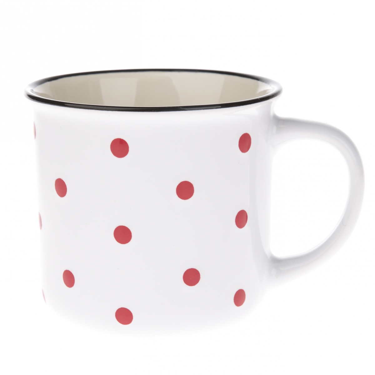 Bílý hrnek s puntíky v červené barvě je jak vystřižený z alba z našeho mládí a určitě v něm bude kakao chutnat ještě víc než tehdy. Může se také stát vaším oblíbeným hrnečkem na odpolední kávu nebo ranní čaj.