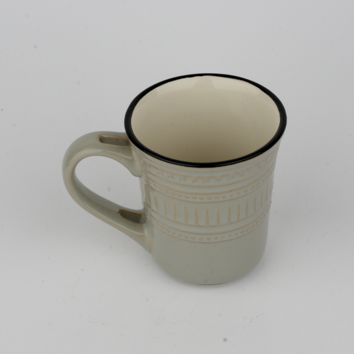 Hrnek se lžičkou šedý na ranní kávu nebo čaj.