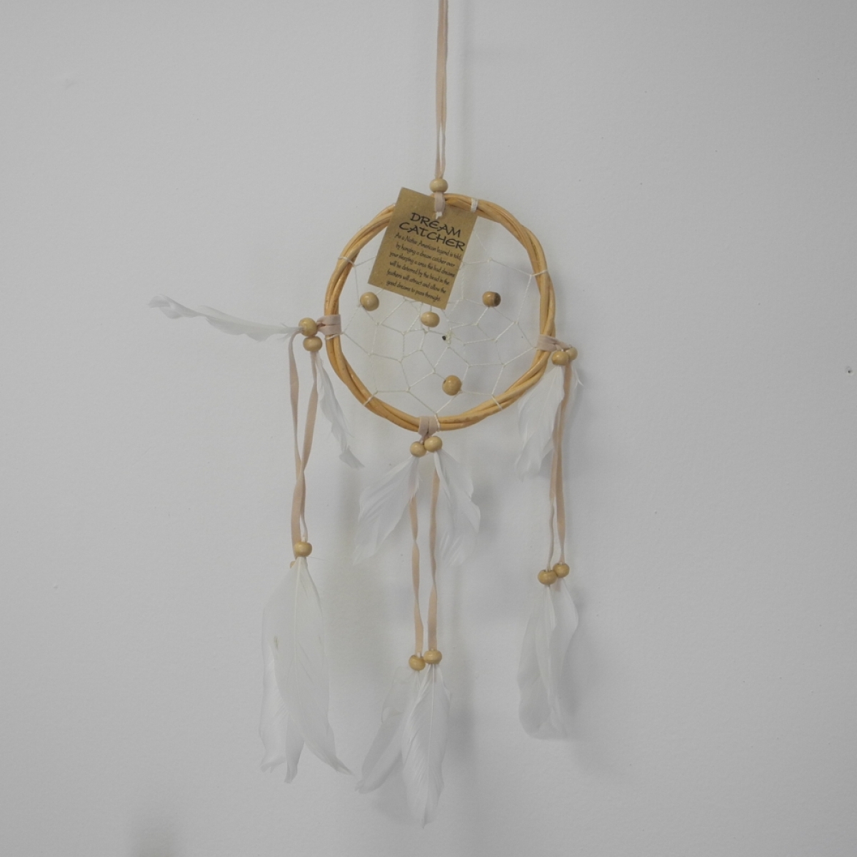 Indiánský lapač snů s ratanovým kruhel o průměru 12,5cm a celkovou výškou 45cm.