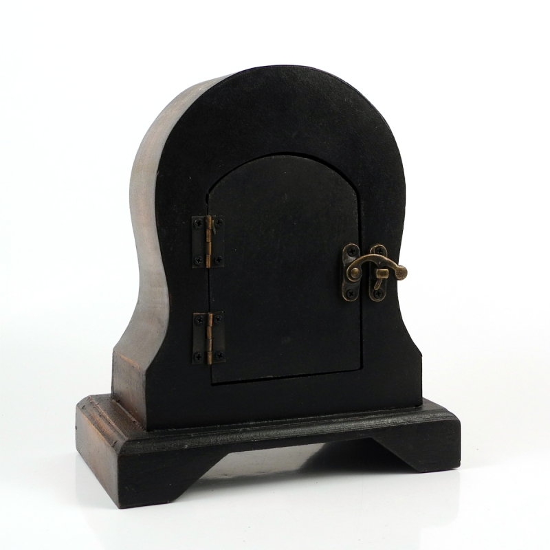Interiérové hodiny jsou vyrobeny ze dřeva. Ciferník a ručičky hodin jsou ochráněny sklíčkem. Ze zadní strany se nachází dvířka na kovovou západku, za kterými je umístěn strojek hodin. Retro doplněk ke stylovému nábytku.
