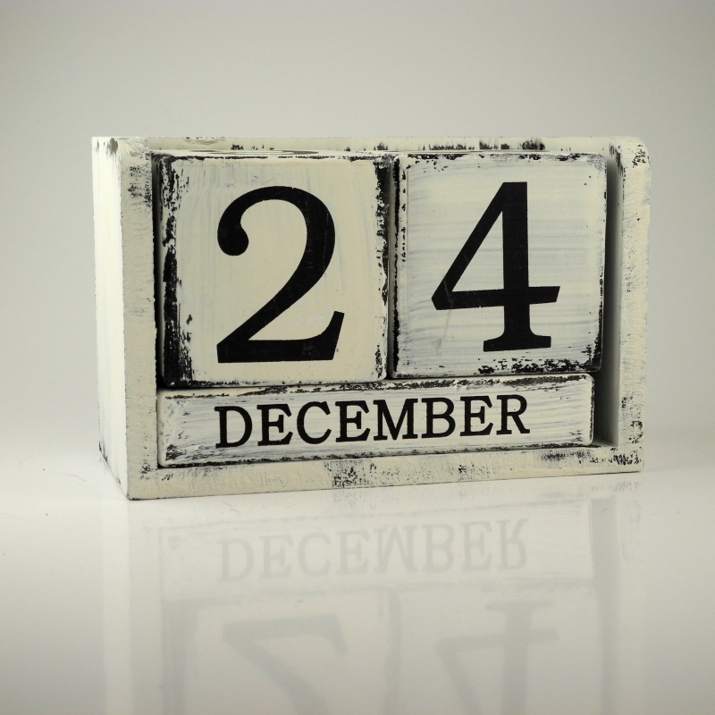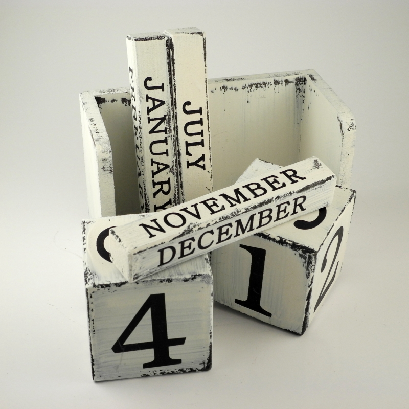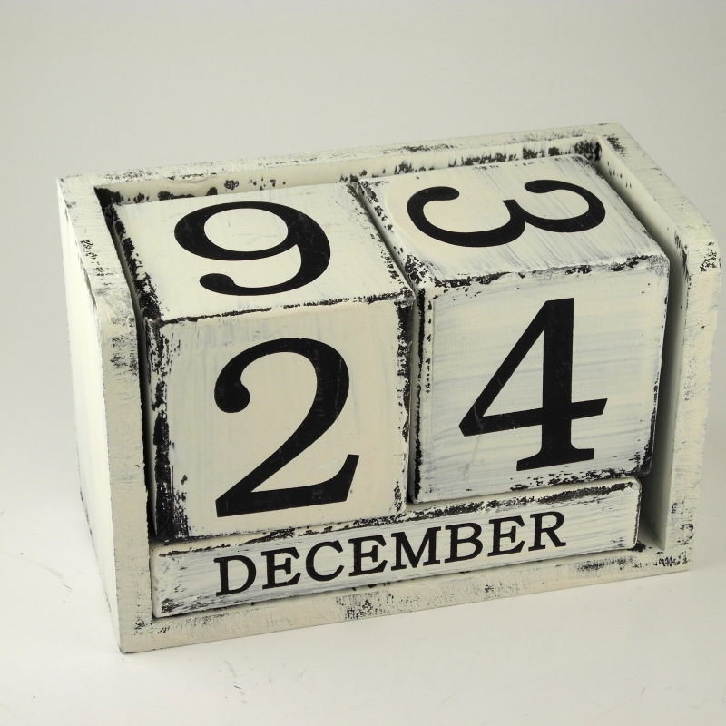 Kalendář dřevěný retro. Dřevěný retro nekonečný kalendář lze nastavovat otáčením dřevěných kostek o rozměrech 7.5x7.5cm. Celkové rozměry výrobku: 17x9x11cm.