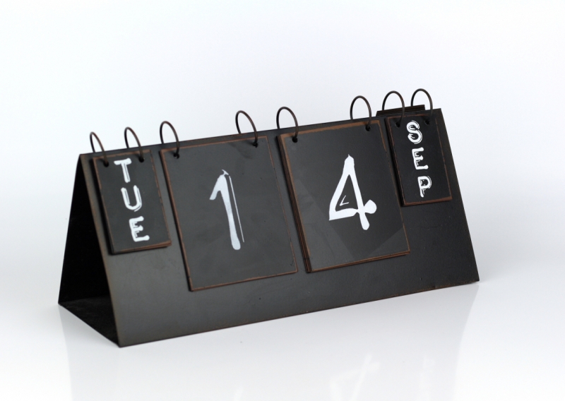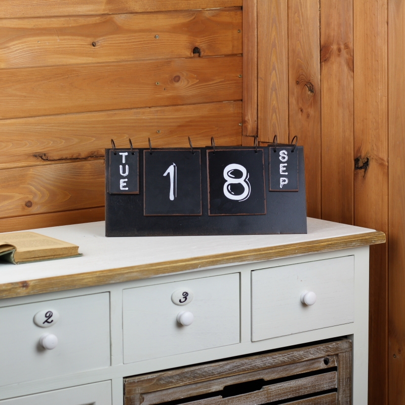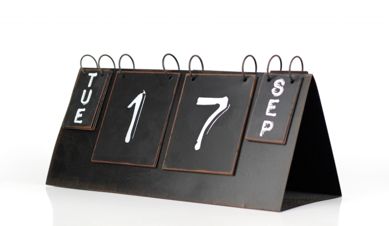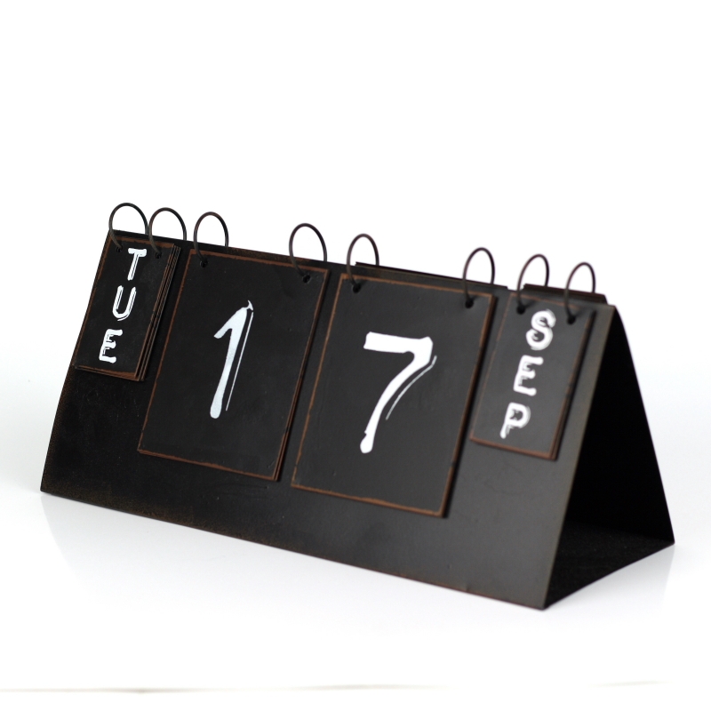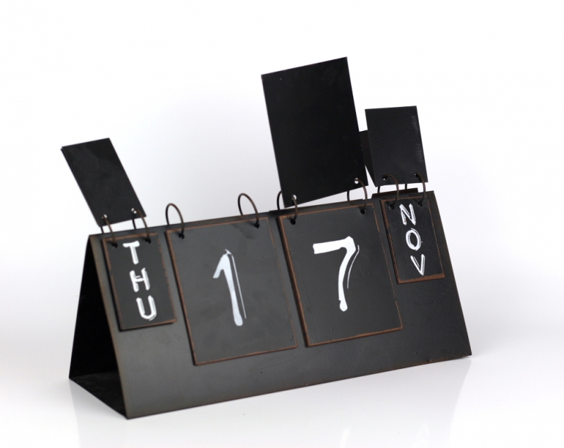 Kalendář je krásnou stylovou dekorací. Tento je kovový s otáčecími štítky - s datem, dny a měsíci. Barevně je laděn do černo-bílé klasiky, která je nestárnoucí a hodí se do každého inteiréru.
