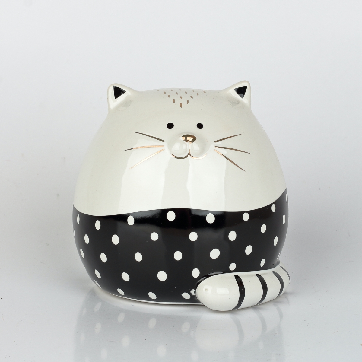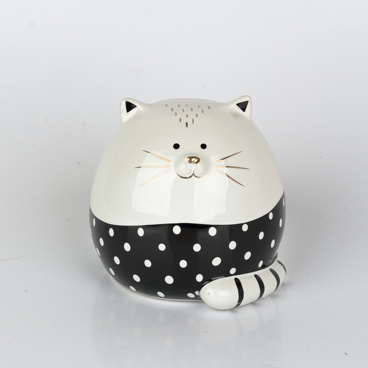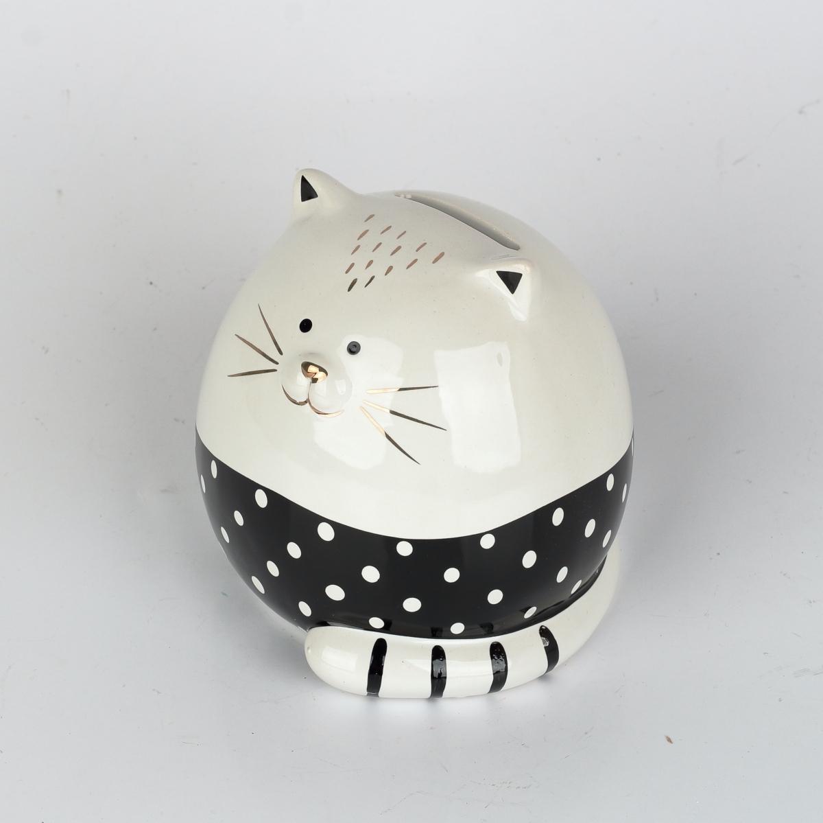 Kasička na peníze v podobě černobílé kočičky