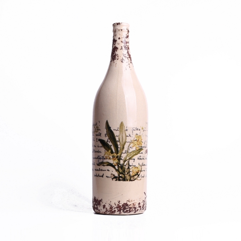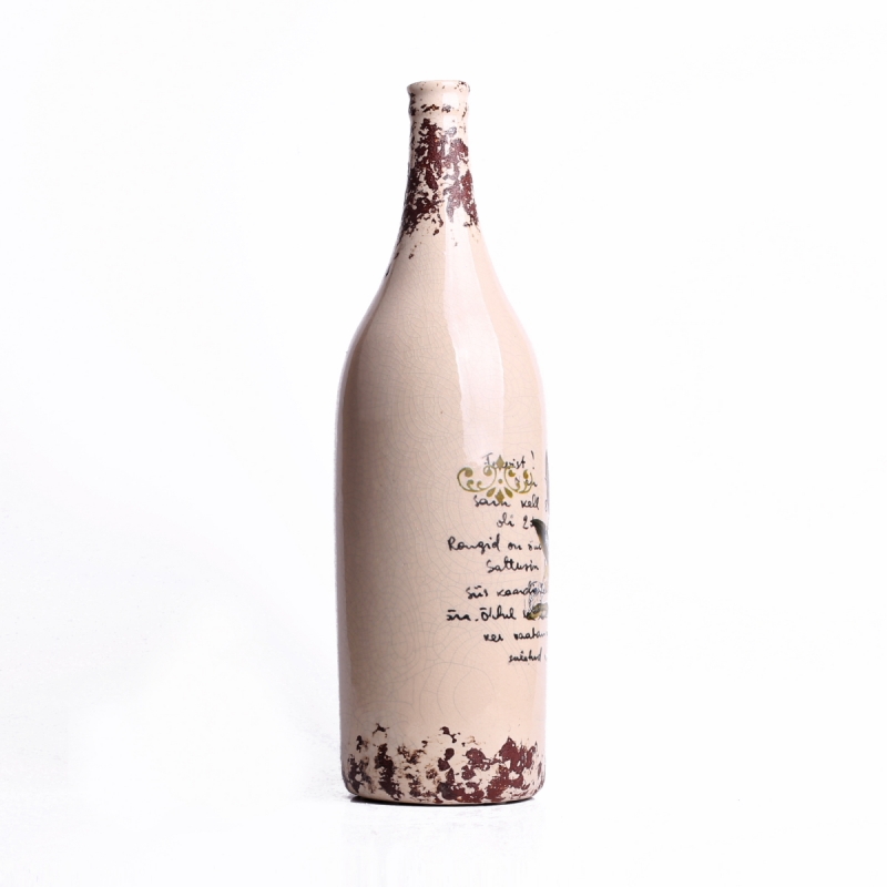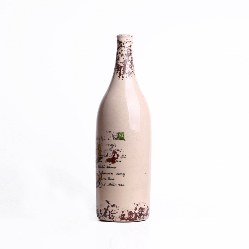Keramická láhev/váza krémová 33x10cm se silně oprýskaným vzhledem v nás evokuje tajemno starých časů. Vypadá, jako by byla právě objevena hluboko v zemi.