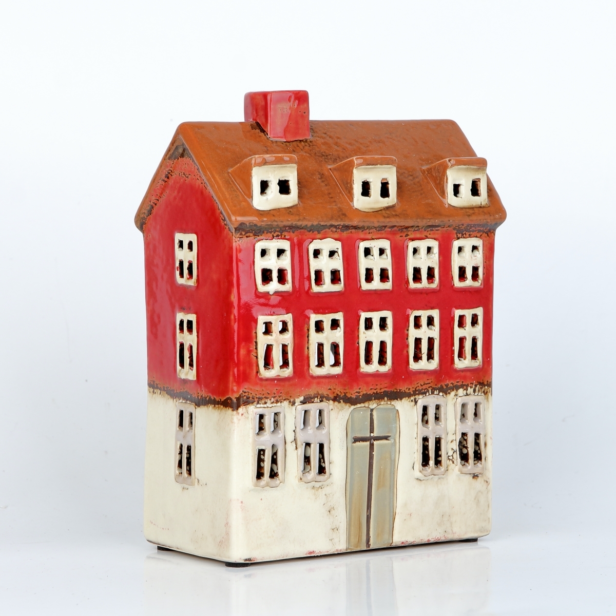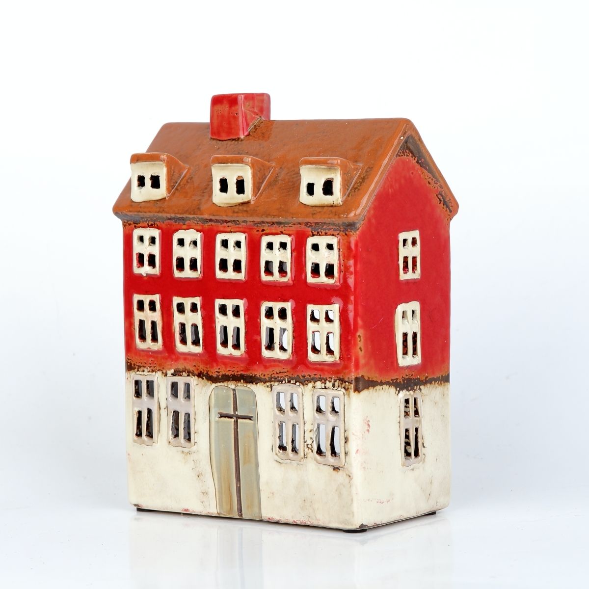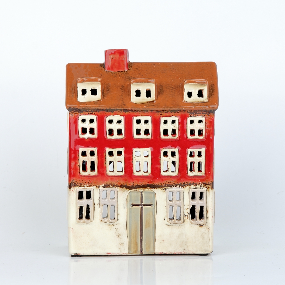 Keramické vánoční domečky s otvorem na čajovou svíčku.