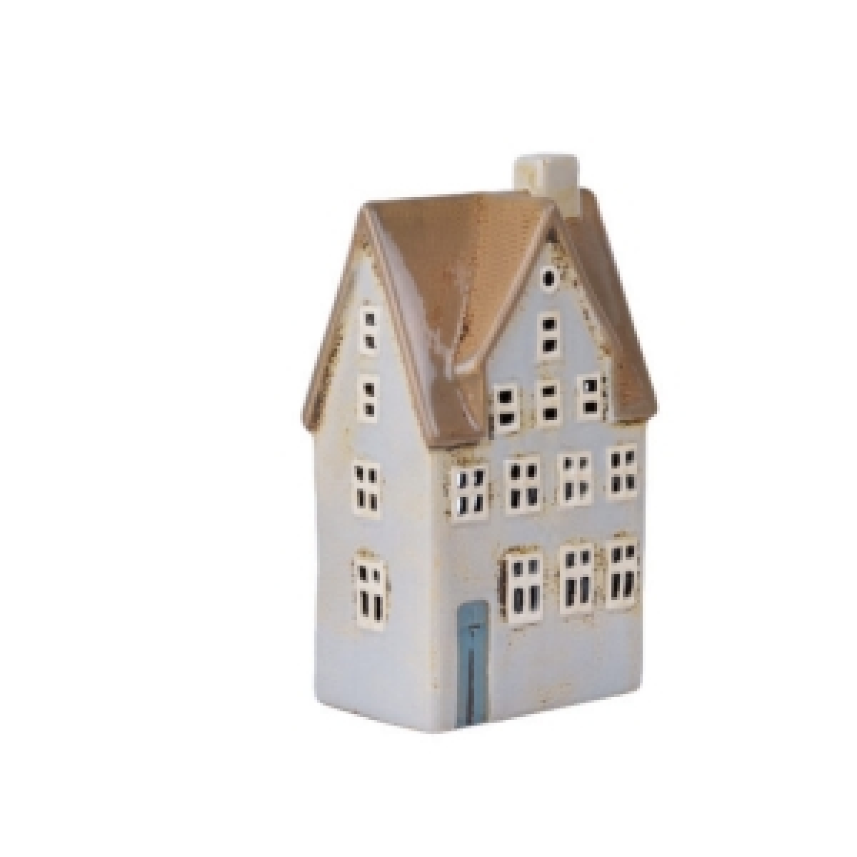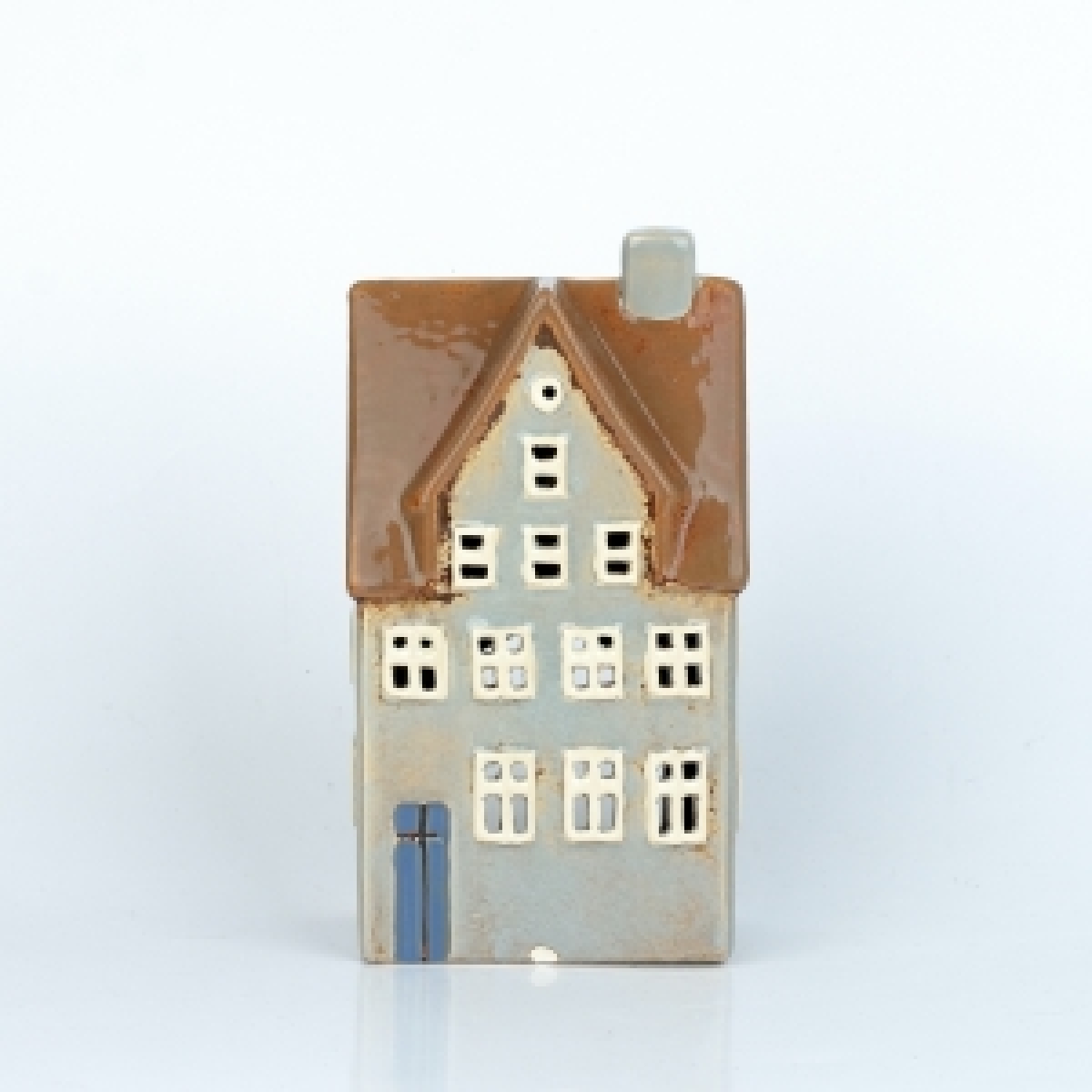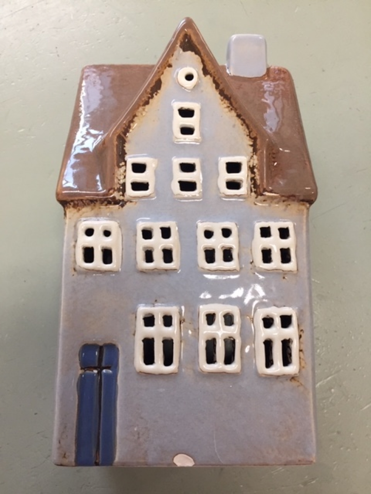 Keramický domeček s otvorem pro čajovou svíčku je vyřazen z důvodu poškození glazury (foto 3 a 4) - použito na prodejně.