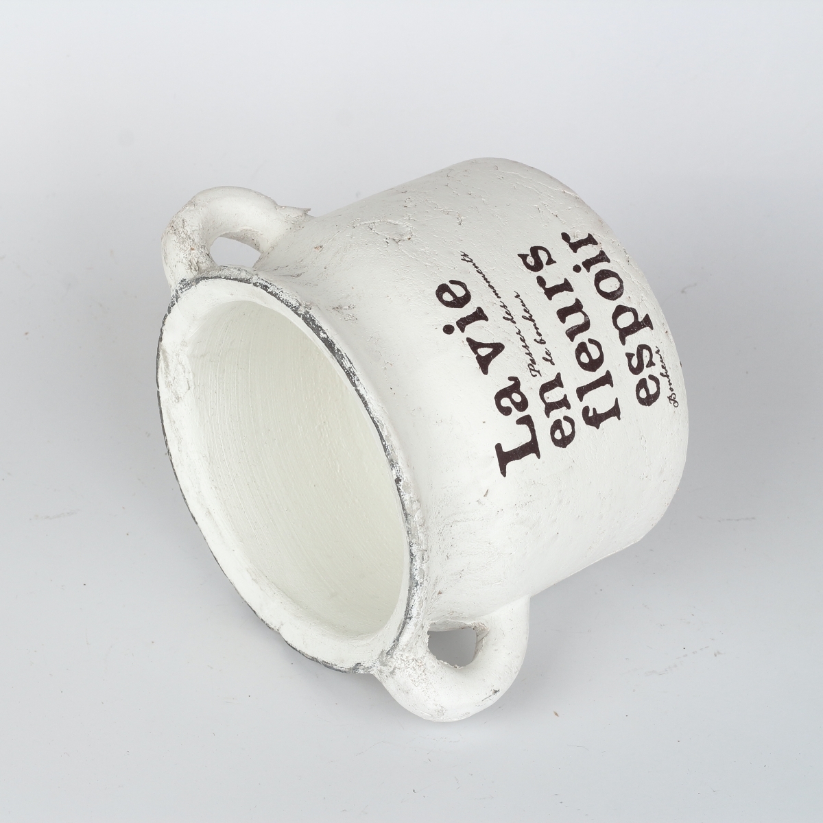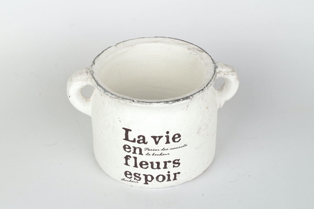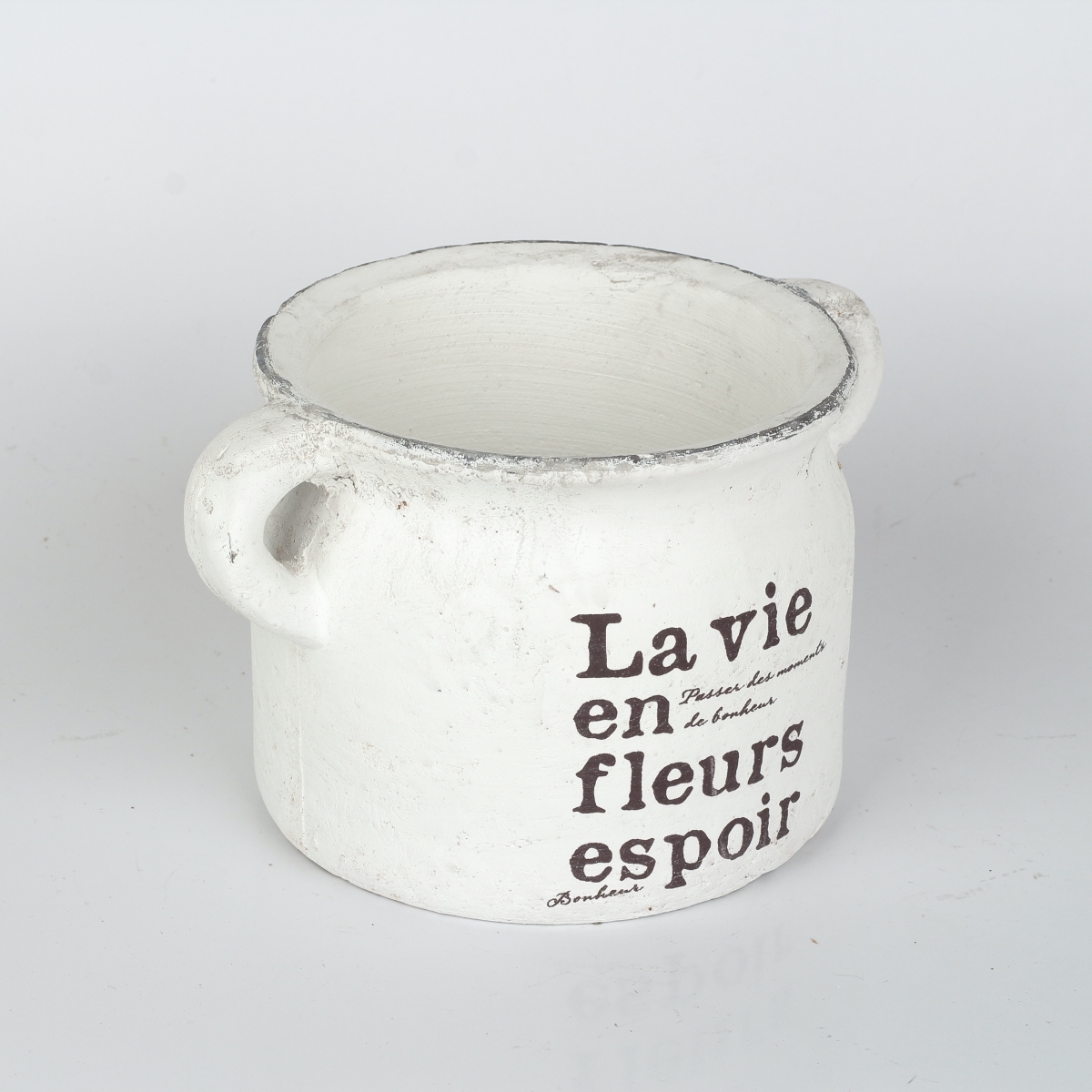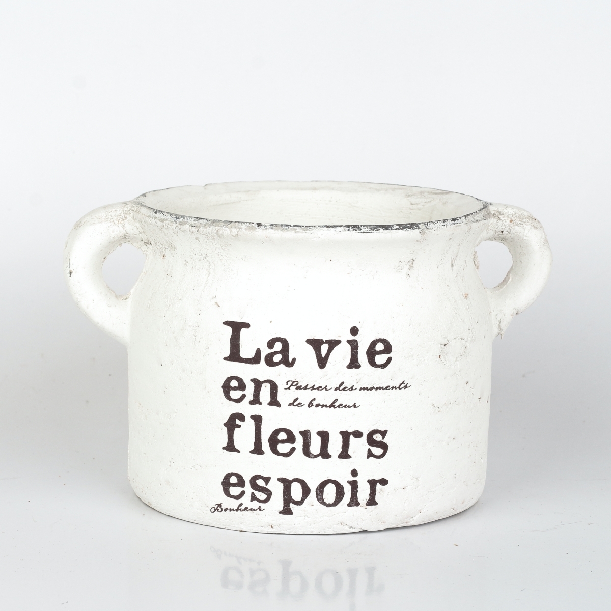 Keramický květináč bílé barvy s nápisem La vie en fleur espoir