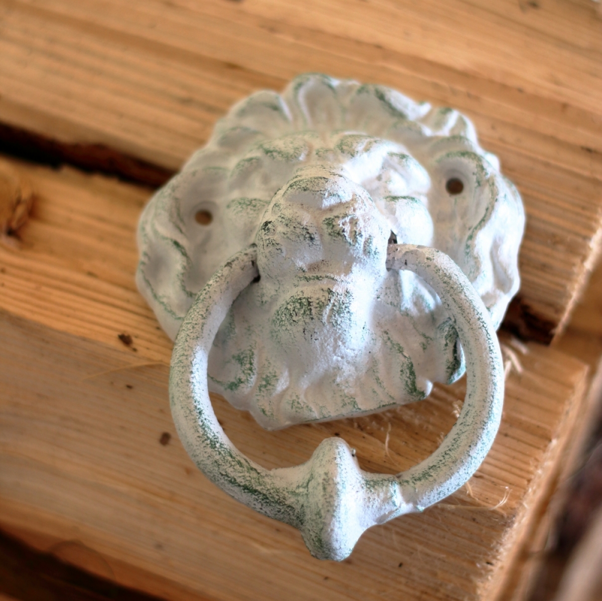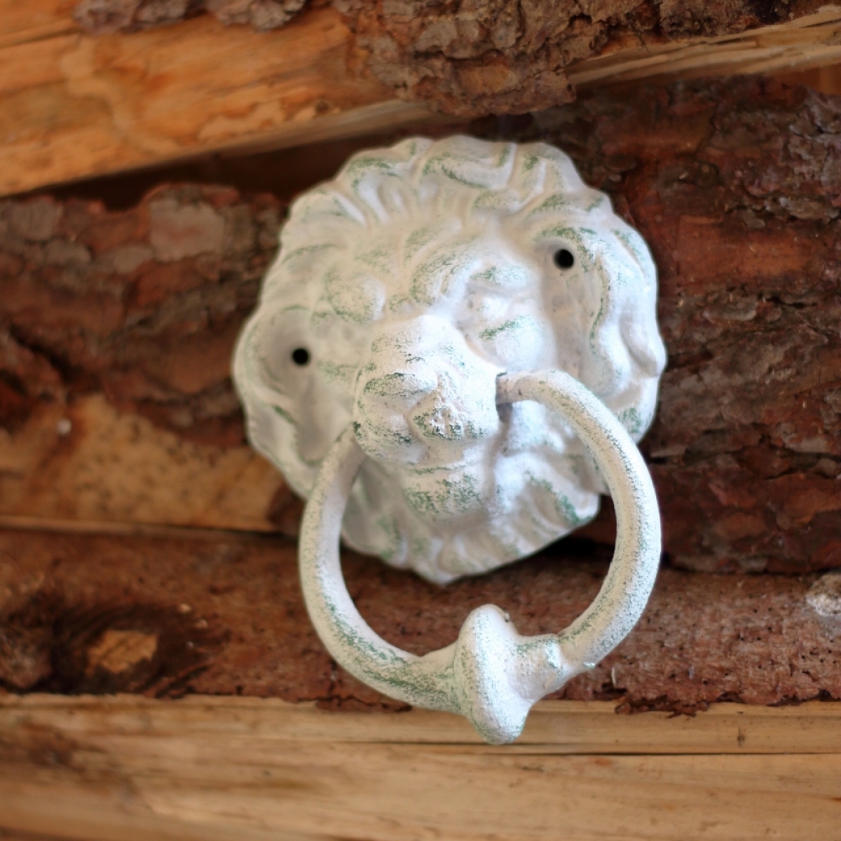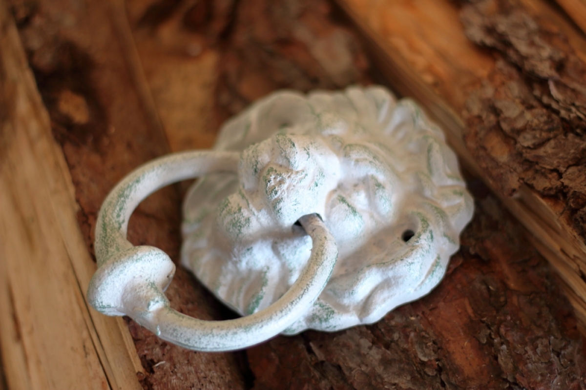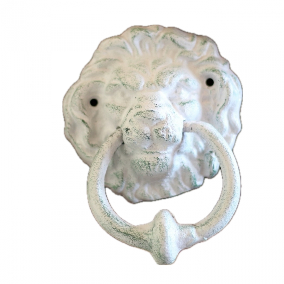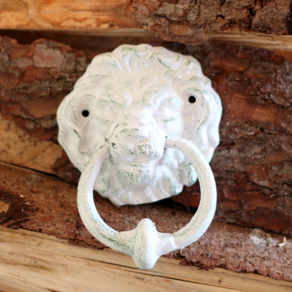 Bílé klepadlo na dveře o velikosti 15,5 x 11,5 x 5 cm.