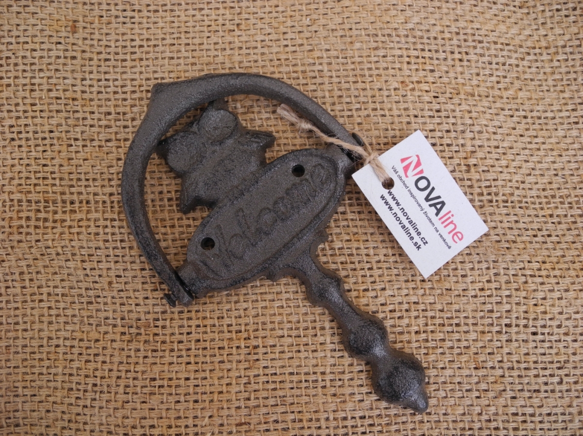 Klepadlo na dveře snadno připevníte díky dvěma otvorům na šroubky v rozích. Je vyrobeno z litiny, odolného a krásného materiálu.